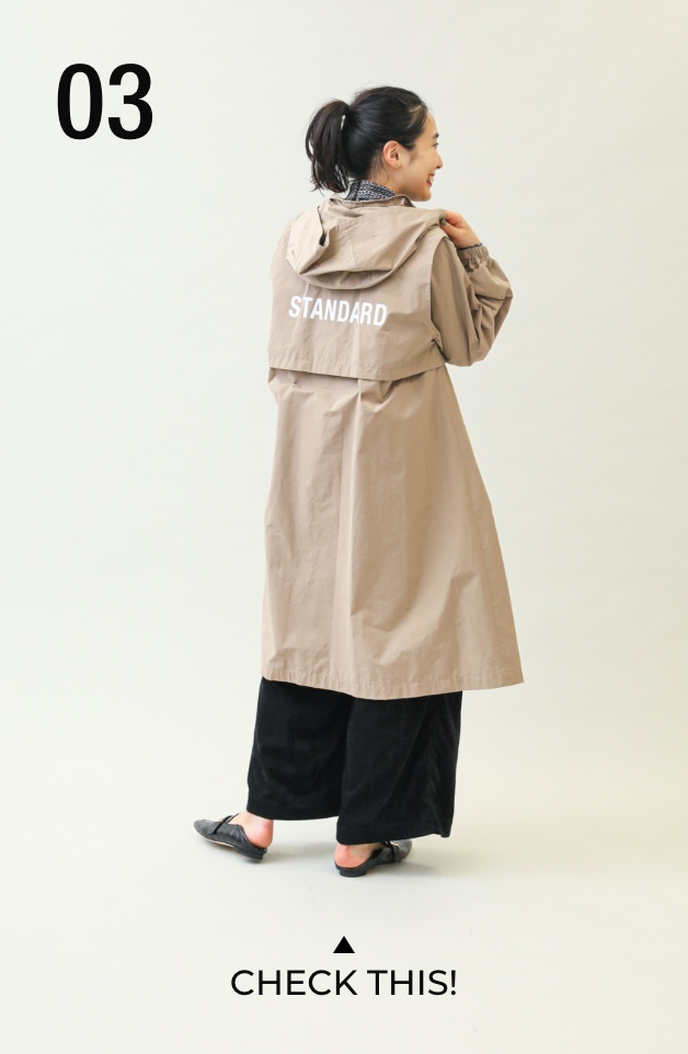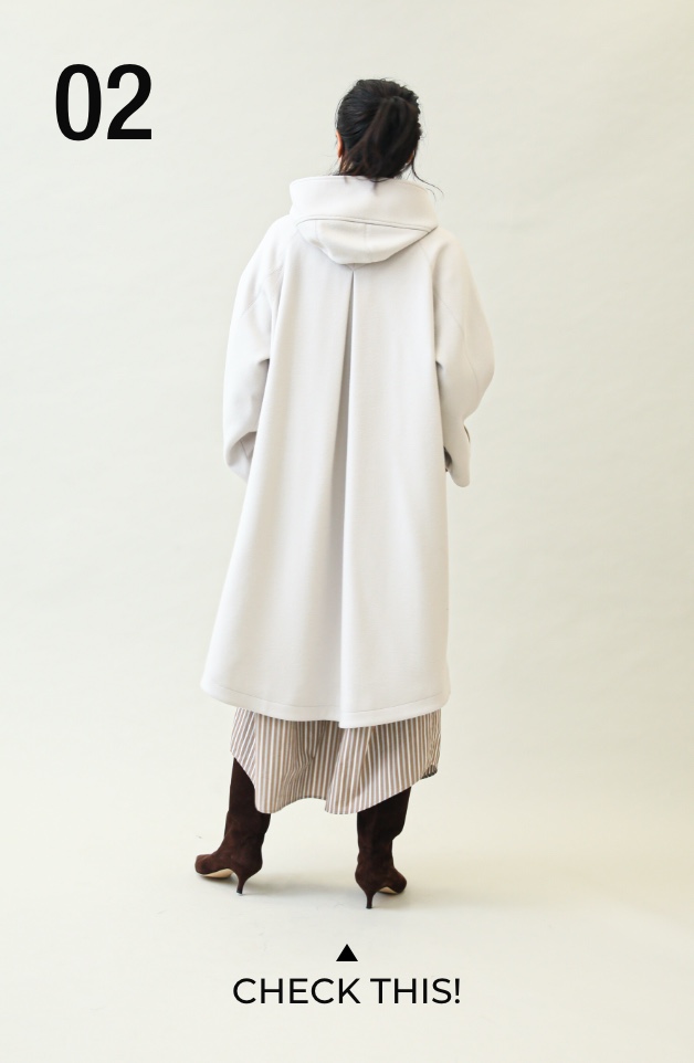 - 昨年ご好評いただいたフードコートを今年の気分に合わせてデザインをアップデートして登場!ゆとりのあるラグランスリーブは中に着るアイテムを選ばず、着回し力も抜群です。背中のタックもポイントで後ろ姿もバッチリ決まります。