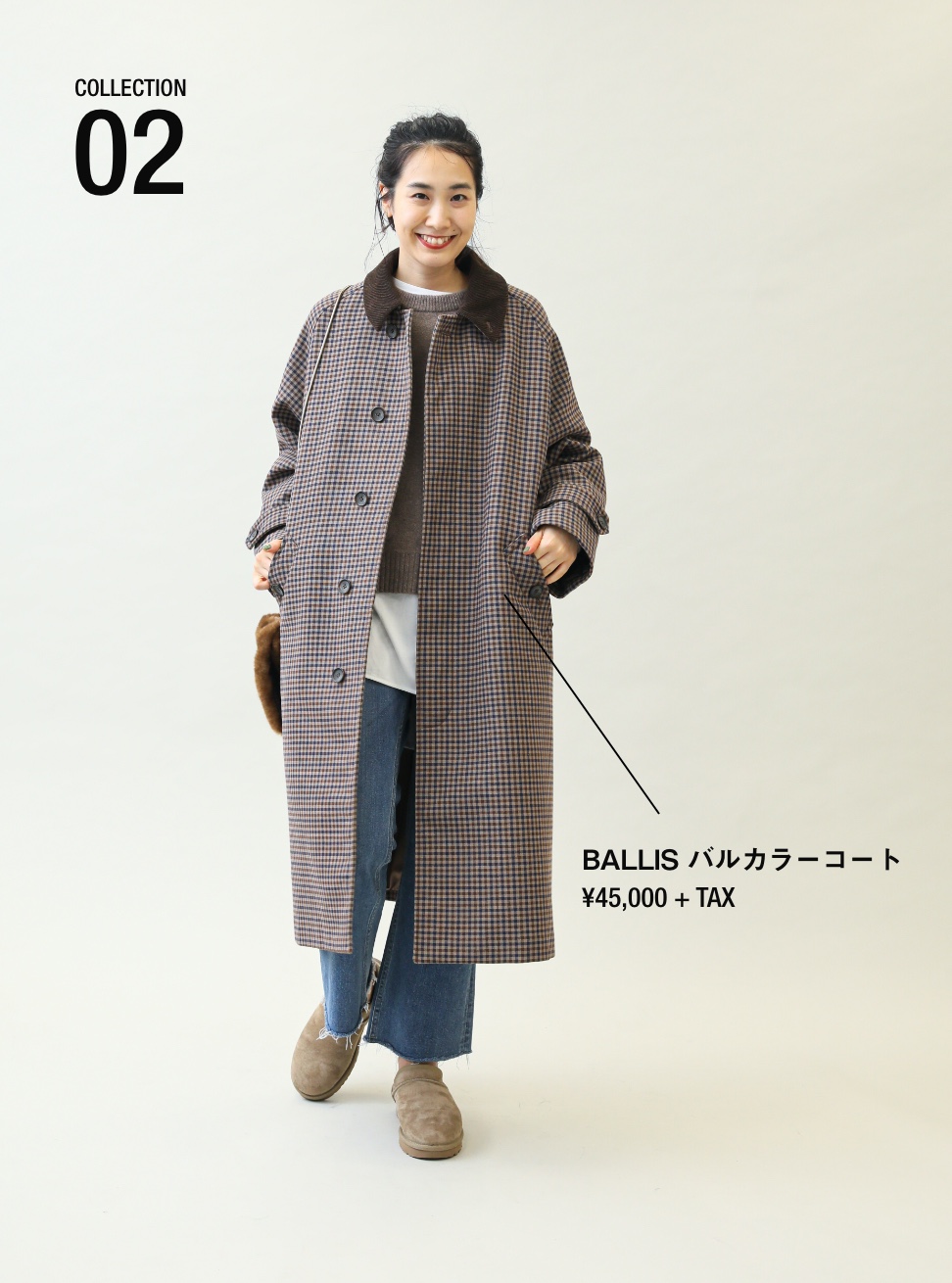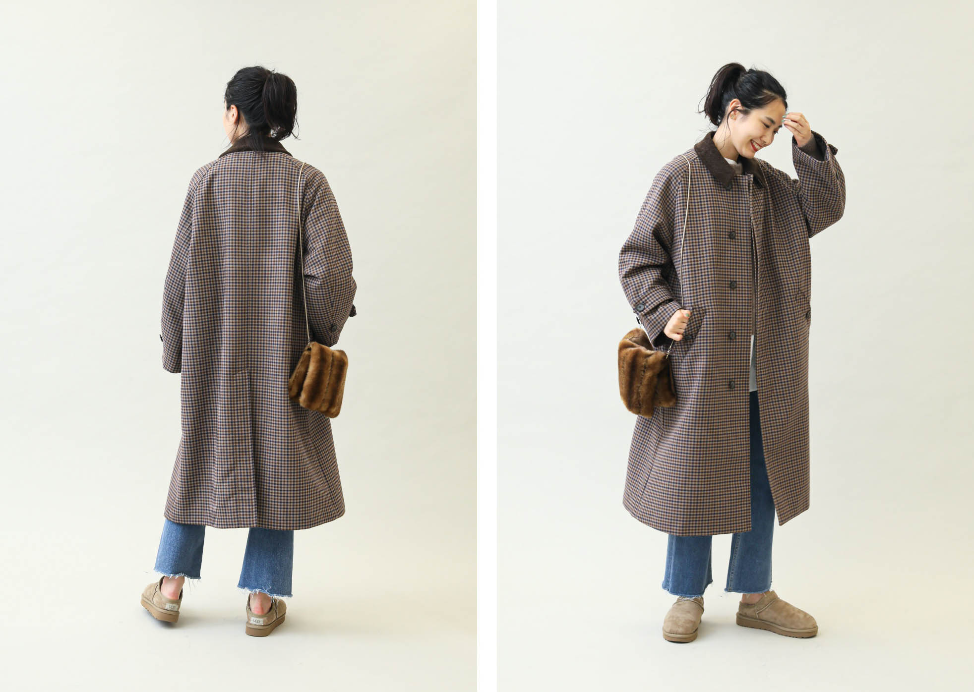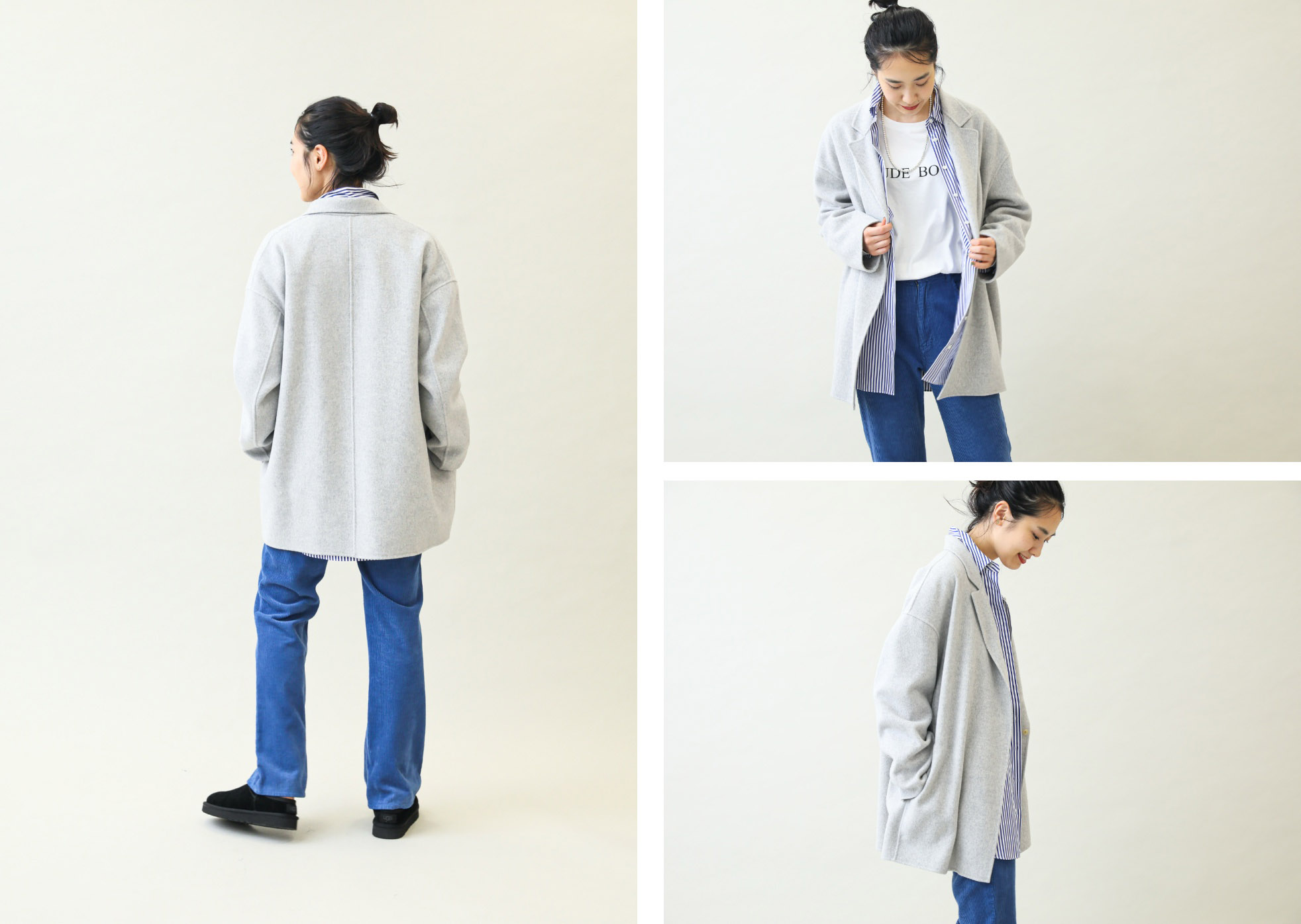 - イタリアのインポートファブリックを使用したバルカラーコート。メンズライクな大きめのサイズ感が今年らしく、カジュアル派の心をくすぐります。ゆったりとした身幅とラグラン袖で寒くなっても中に着込め、長いシーズン着こなしを楽しめるのも魅力。