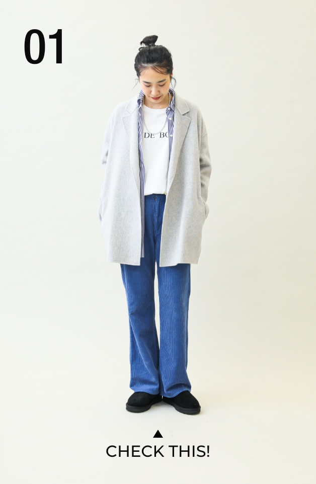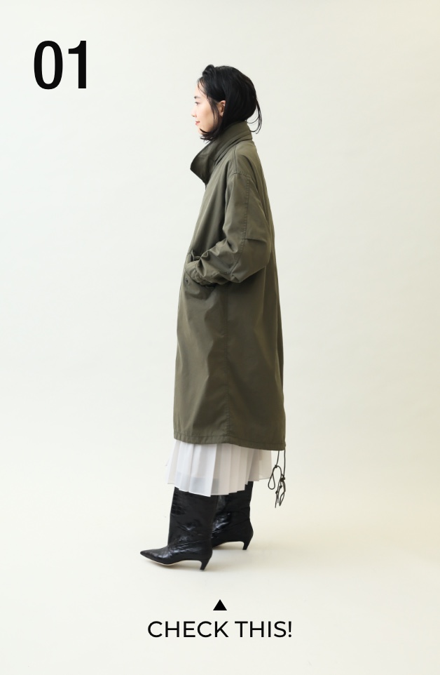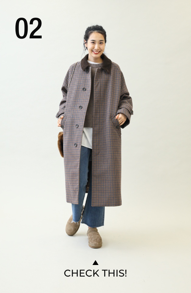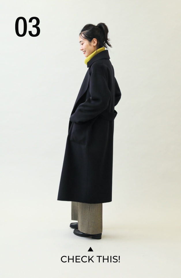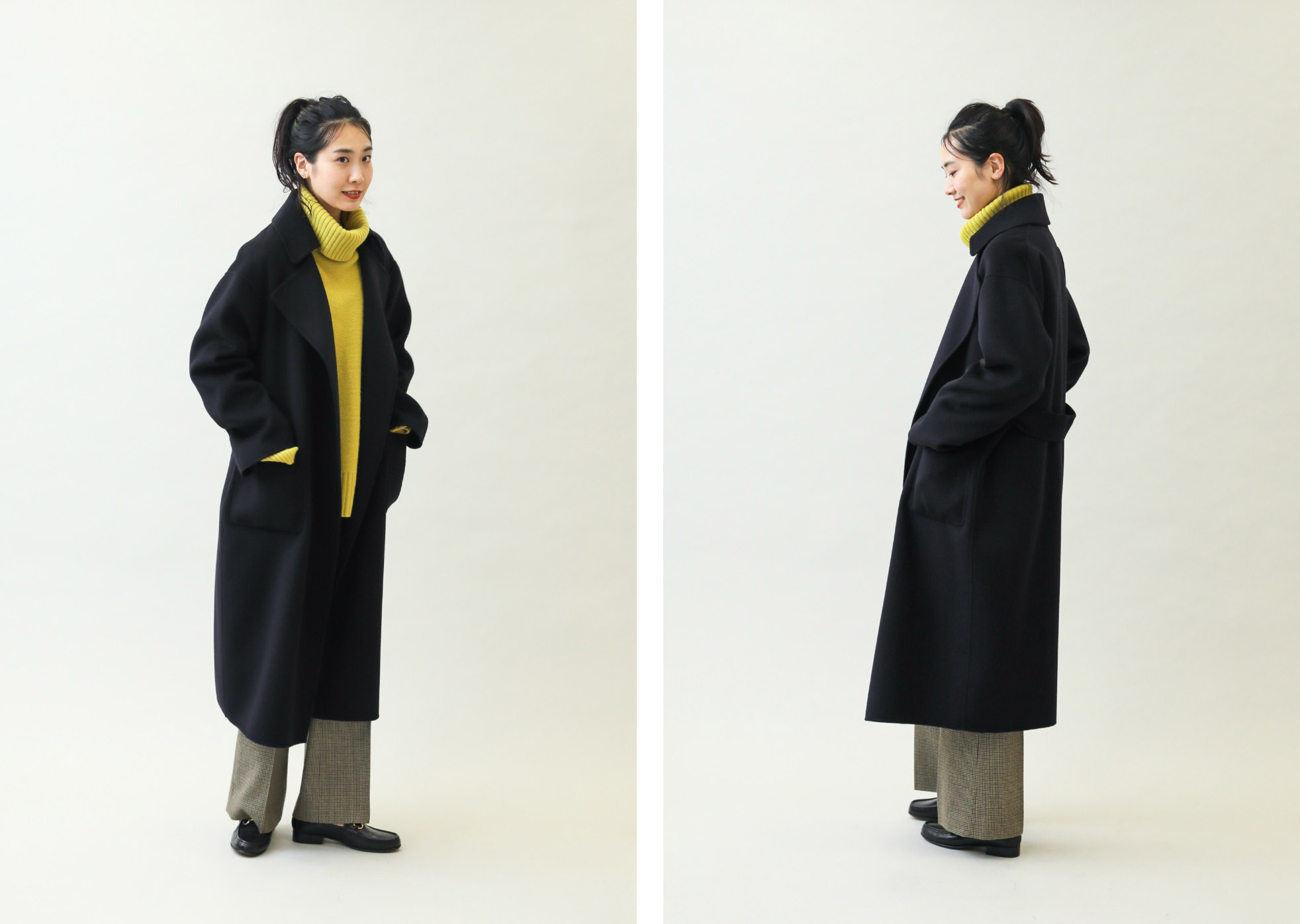 - イタリアのインポートファブリックを使用したバルカラーコート。メンズライクな大きめのサイズ感が今年らしく、カジュアル派の心をくすぐります。ゆったりとした身幅とラグラン袖で寒くなっても中に着込め、長いシーズン着こなしを楽しめるのも魅力。