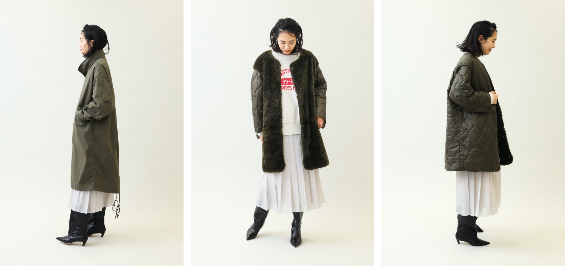 キルティングとボアの切り替えデザインが可愛いライナーは単品でも着られて、さらにリバーシブル仕様!1枚で4通りの着方が楽しめ、様々なスタイリングに取り入れられる正真正銘の優秀アウター。