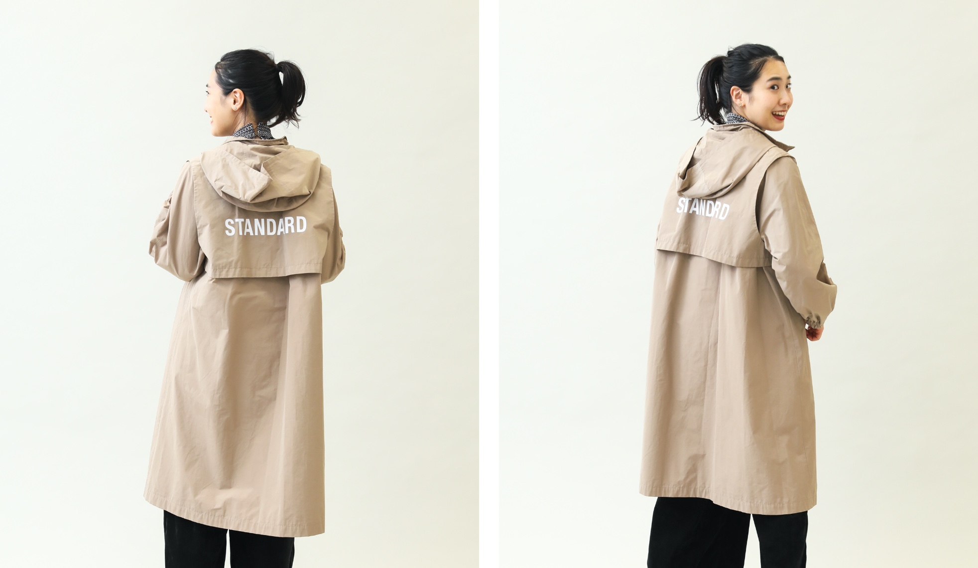 - 多くのメゾンや老舗ブランドも使用しているOLMETEX社の生地を使用することで、撥水性が高く軽量で実用性にたけたコートに。フードヨーク部分が取り外しでき、2WAY使用。背中のキャッチーなロゴも新鮮な一着。