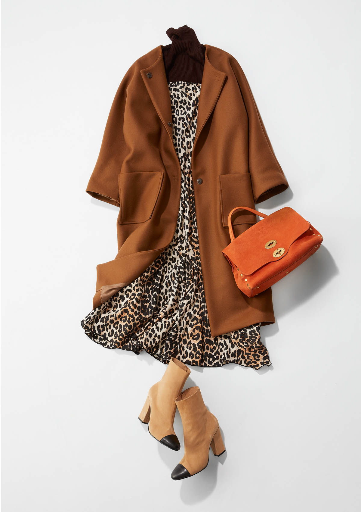 - この秋大ヒットしたNOBLEオリジナルのキャミソールドレス。そのドレスのレオパードバージョンがOtonaMUSEとのコラボレーションアイテムとして登場!トレンドと女っぽさをかね合わせたドレスに仕上がりました。同系色のニットをインしてイタリア最高級ウール素材の「MANTECO」を使用したノーカラーコートを合わせるとシックな上品なモードスタイルに。レオパードの面積を少なくしたい時にはニットにインできるレイヤードに適した素材感と肩紐の長さを調節できるアジャスター付きで実用性でも優秀なアイテムです。