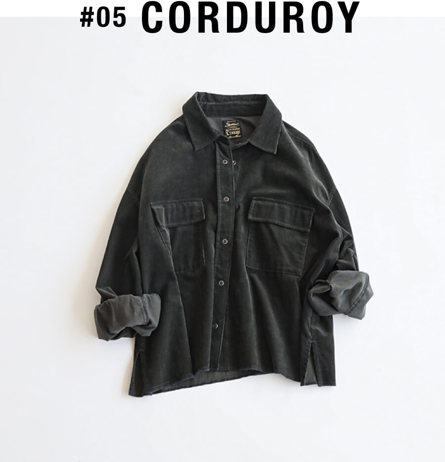 - トップスとしても羽織りとしても大活躍してくれるコーデュロイシャツ。