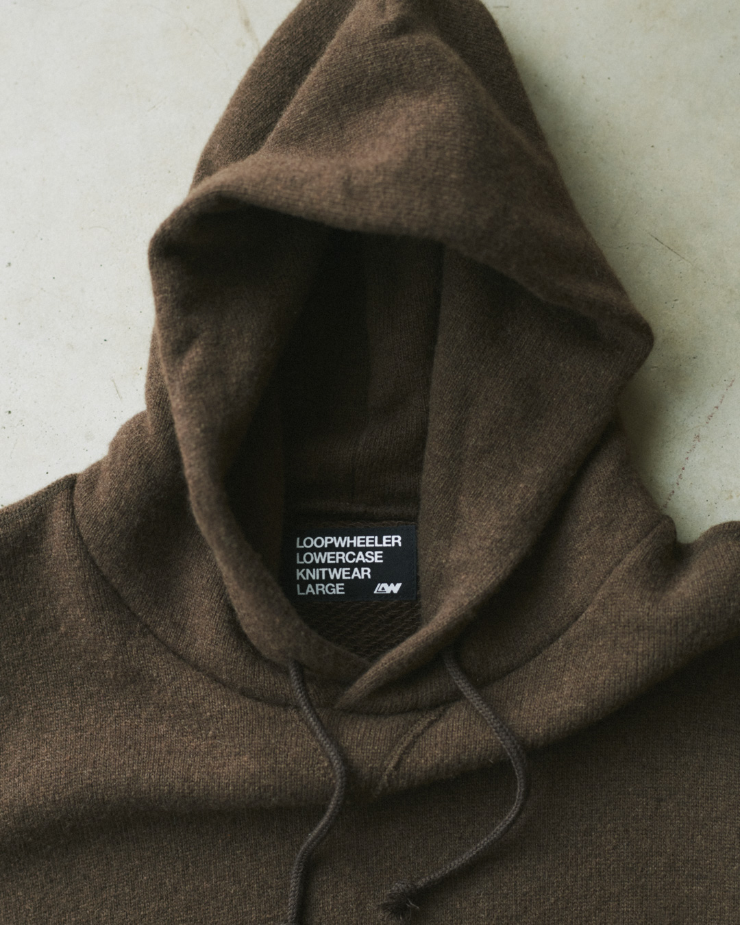 ÉDIFICEのスウェットパーカこれがスウェット? なルックスは、表面がウールで裏がコットンになる特殊な編みの裏毛ゆえ。ループウィラーが顧客向けの受注会だけで展開していた通称"ウールウィラー"が元ネタで、丸胴ボディなのにあえてサイドにパネル風の切り替えを施し、首元にはV字のガセットを。古着好きにはきっと伝わるこの遊び。だけどもちろん、袖を通したときの高揚感は万人共通。