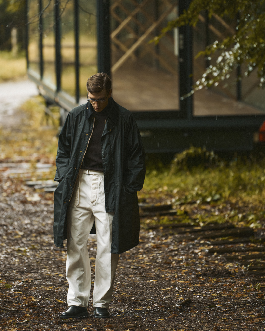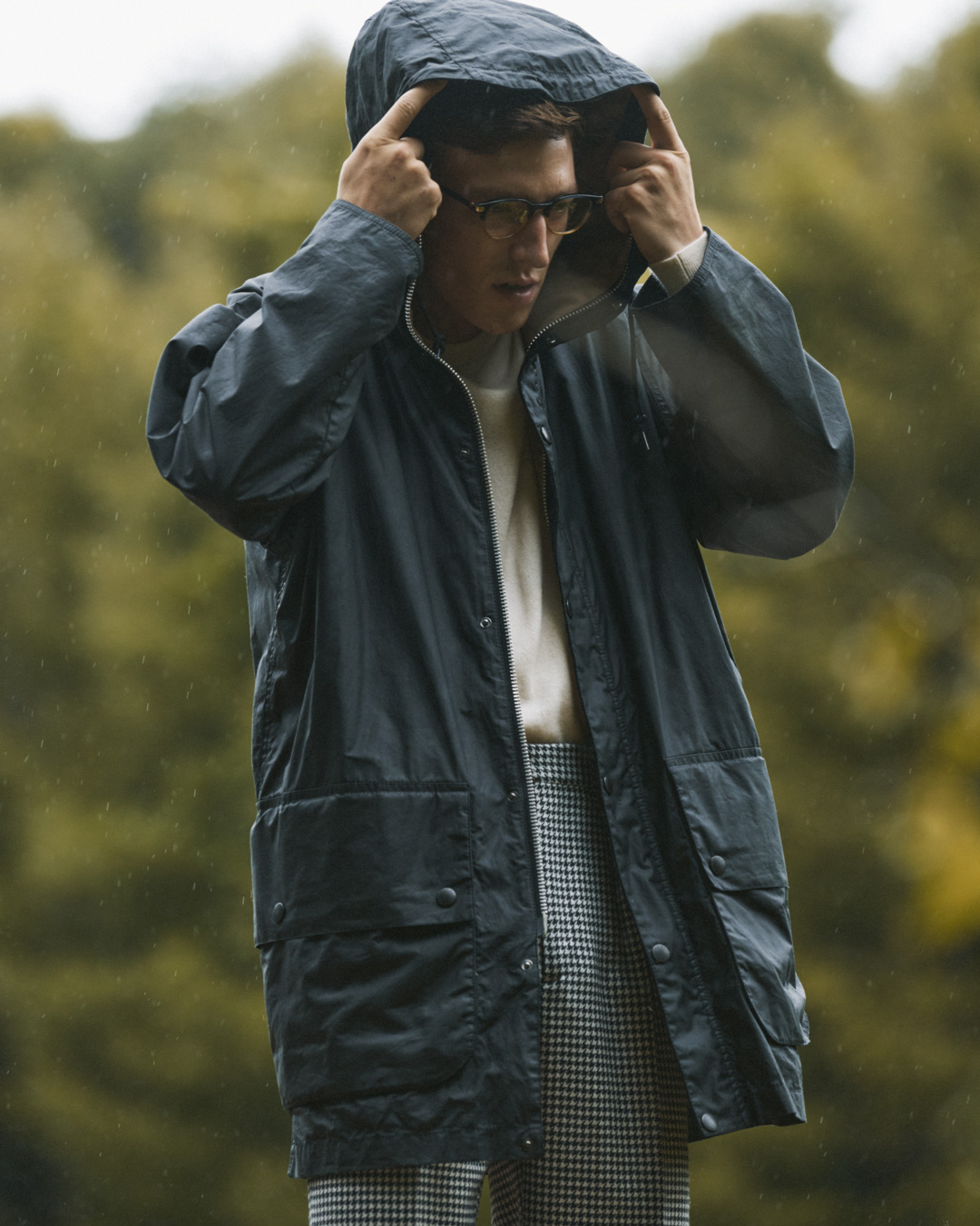 正直重くてベタつくのに、それを補って余りある味わい深さが洒落者たちの心を掴んで離さないバブアー。着丈を少し短くし、反対に身幅は広げて取り入れやすいバランスに再調整した"オーバーサイズバーレー"と"ハイキングコート"の2モデルは、軽めな4オンスのワックスドコットンを使っているから見た目に反してかなり快適。物憂げな曇天にもよく映える。