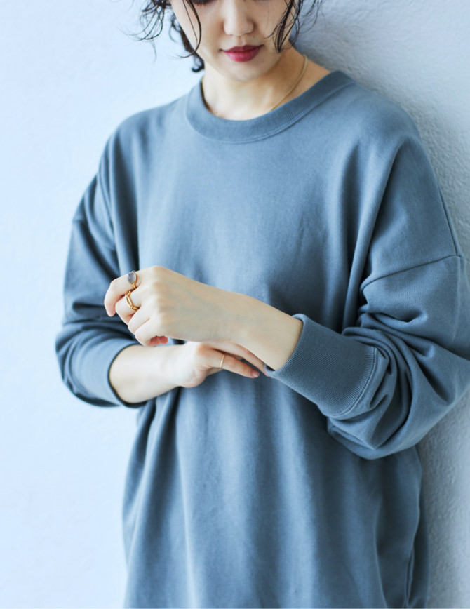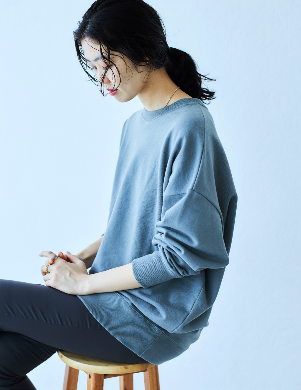 新定番として注目なのがスウェット。IENAらしくきれいな表面感のものを作りました。