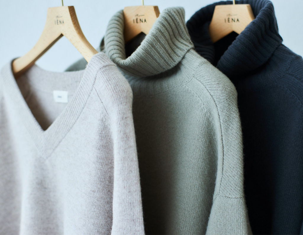 ふんわりと軽いカシミヤ混の素材のニットはIENAで長く愛されているもの。