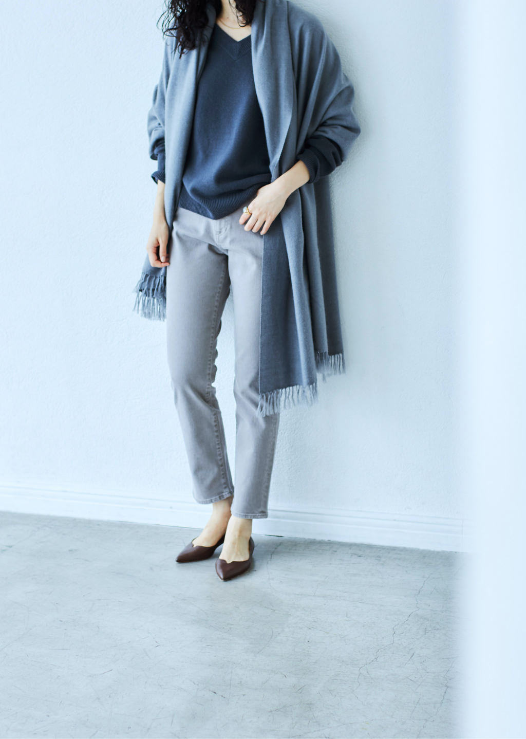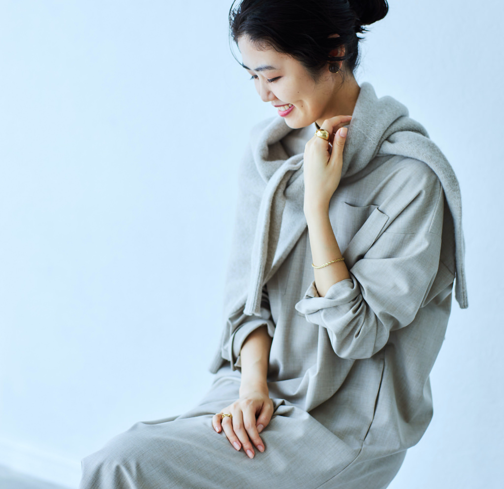 ニュアンスカラーでまとめた雰囲気のあるスタイリングがおすすめ。
