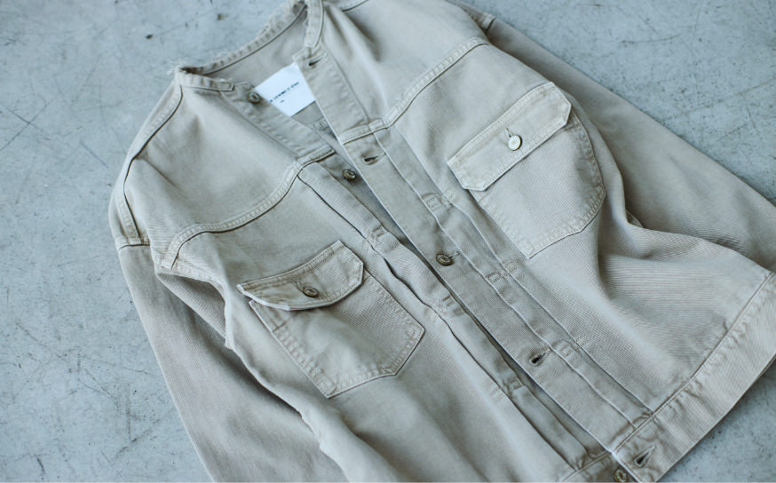 シリーズでブルゾンもご用意。 手作業で加工されたリメイク風のデザインが魅力です。 程よい柔らかさもあり、着るほどに馴染む仕上がりになっています。