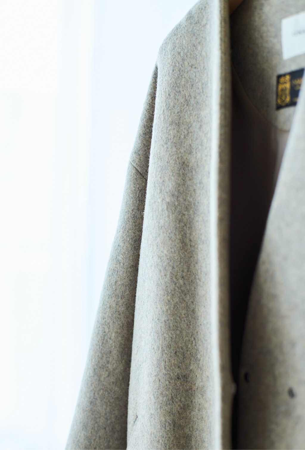 ラムウールの滑らかな手触りとふっくらとした生地は国産の別注素材。