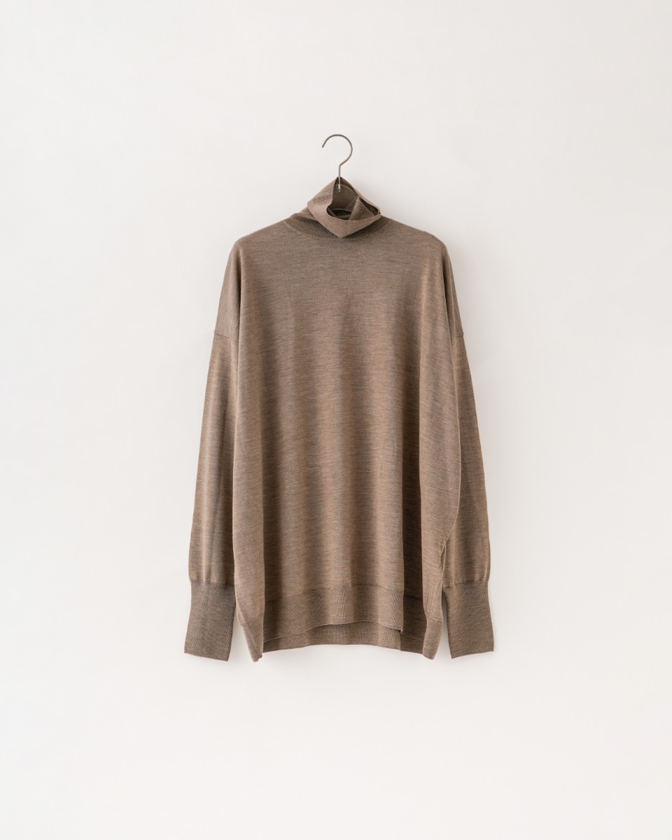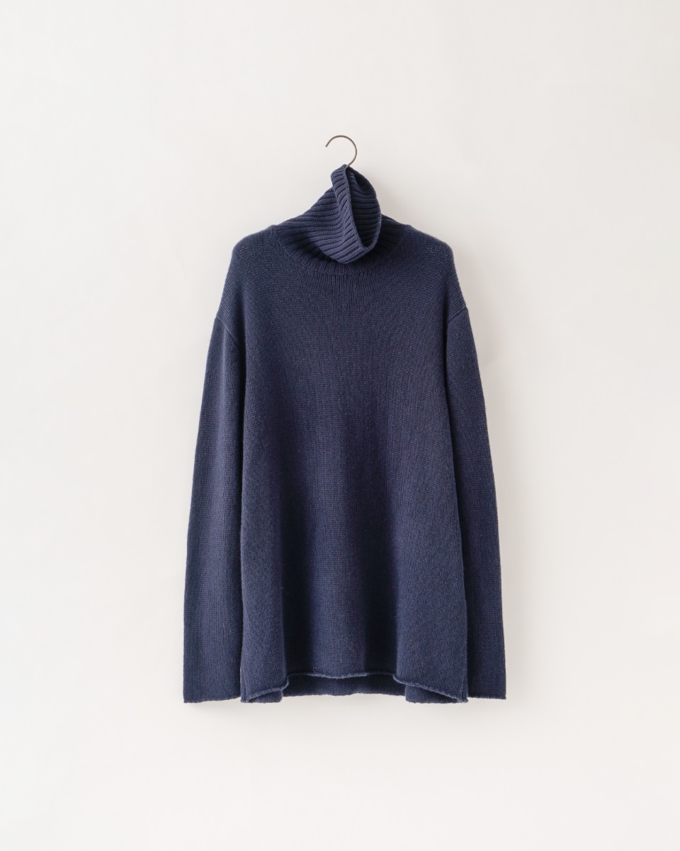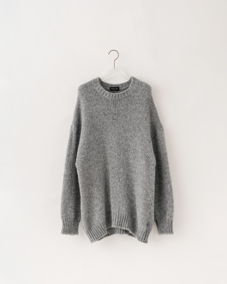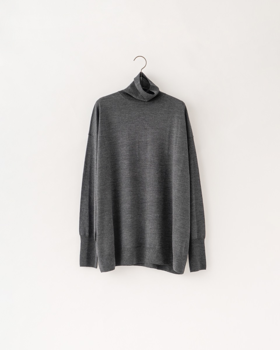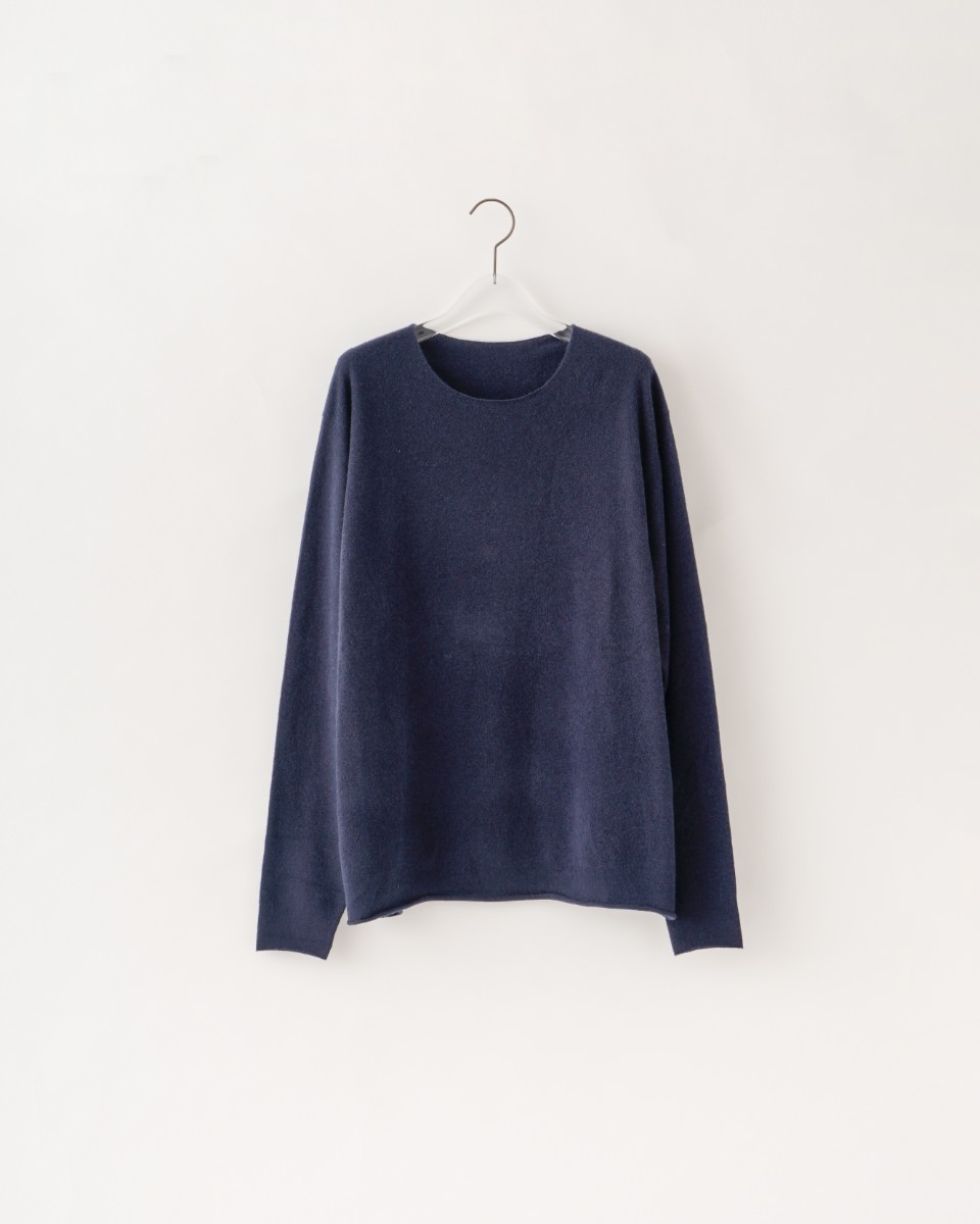 ベーシックなニットだからこそ肌触りの良い上質なものを。繊細で綺麗な編地で高級感のある1枚です。ニットには珍しくサイズ展開があり、ゆったりとしたシルエットです。1枚でも重ねても楽しめて重宝するアイテムです。