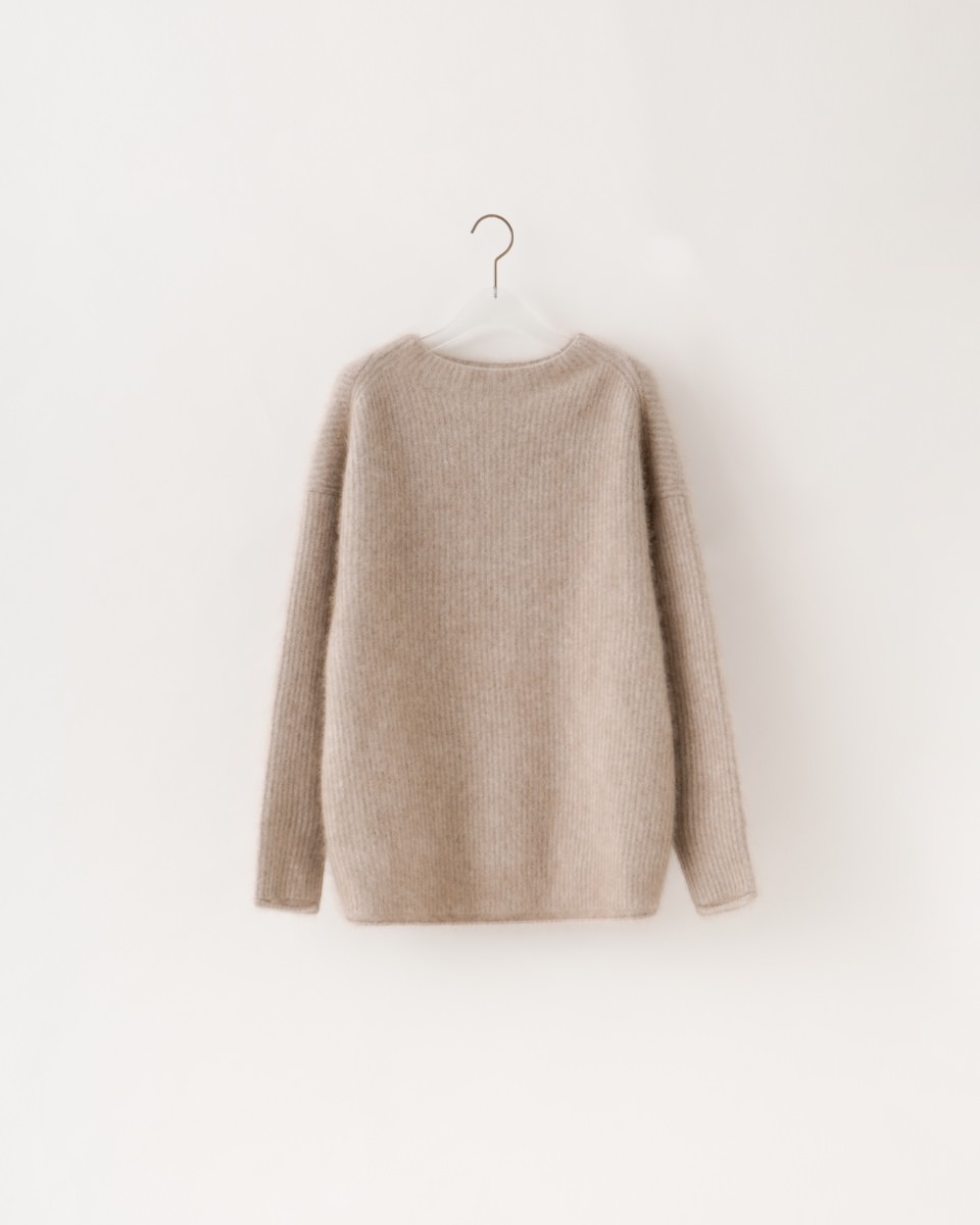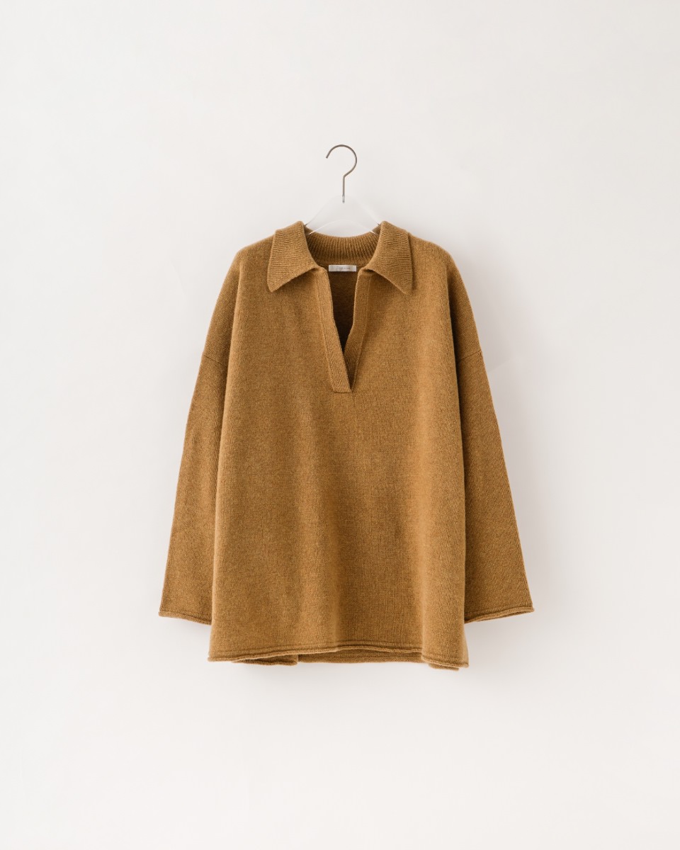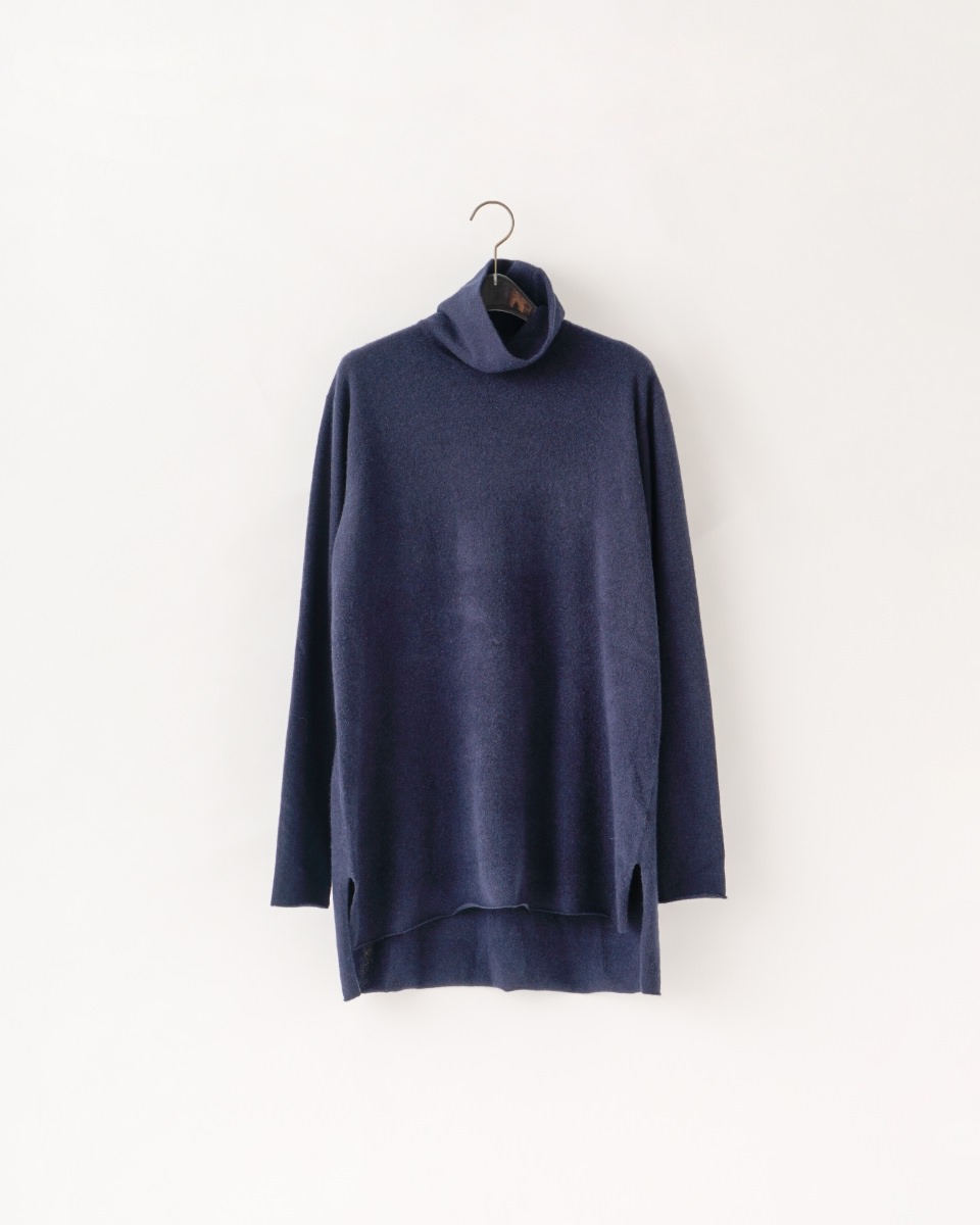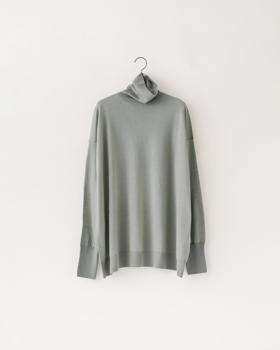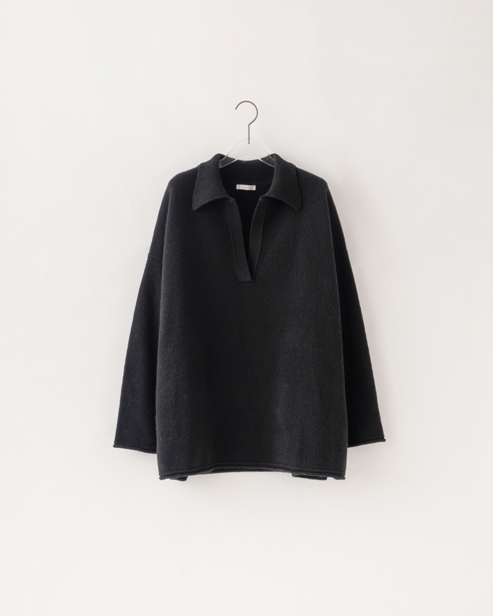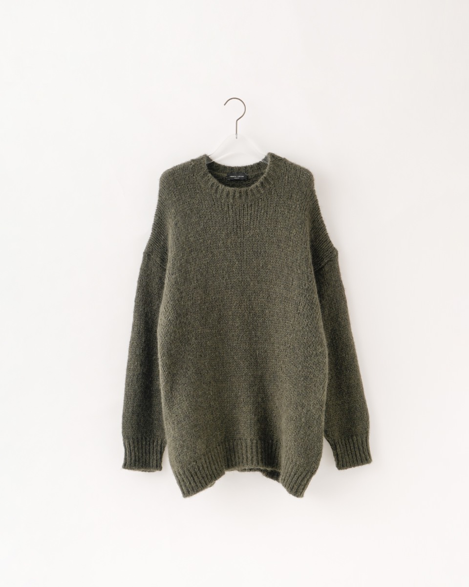 ベーシックなニットだからこそ肌触りの良い上質なものを。繊細で綺麗な編地で高級感のある1枚です。ニットには珍しくサイズ展開があり、ゆったりとしたシルエットです。1枚でも重ねても楽しめて重宝するアイテムです。