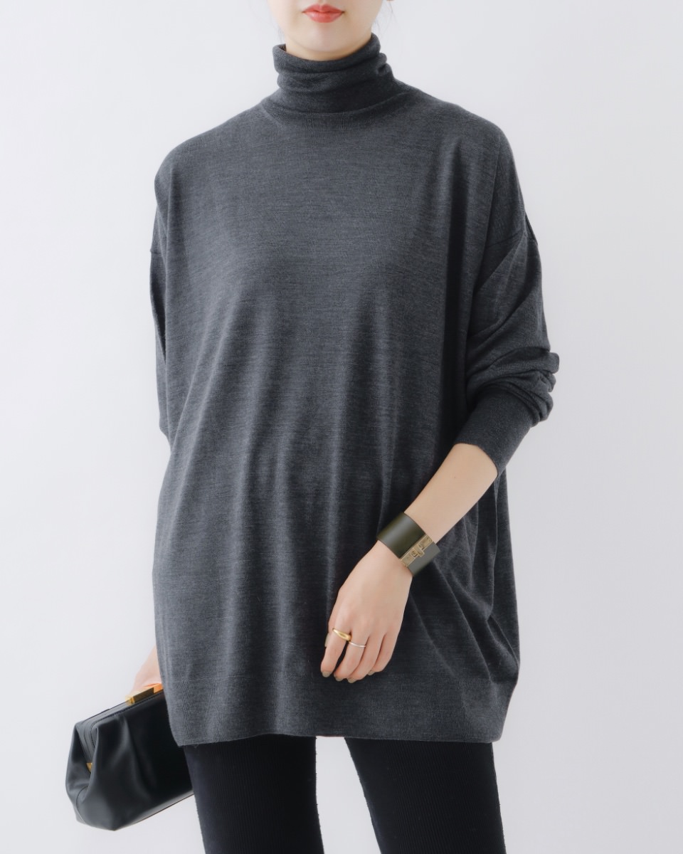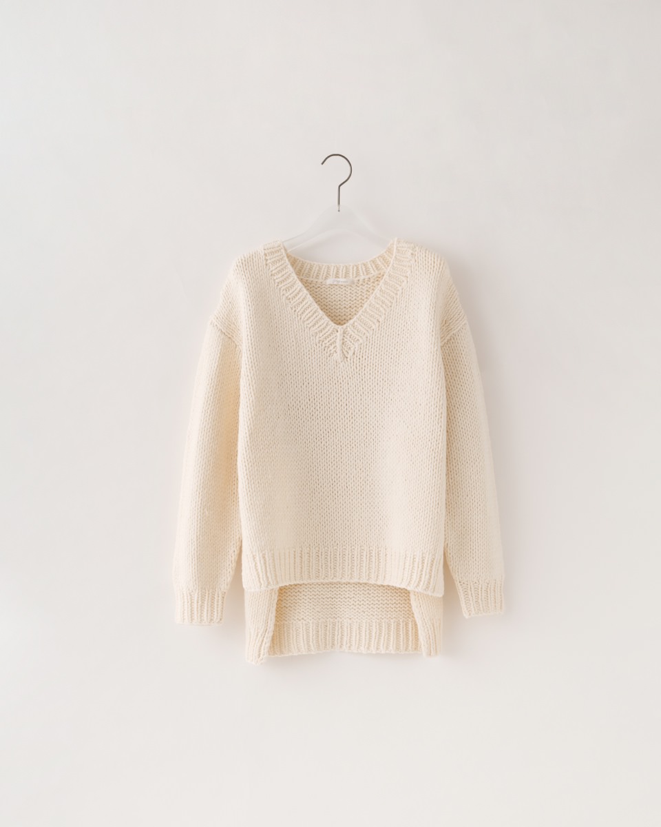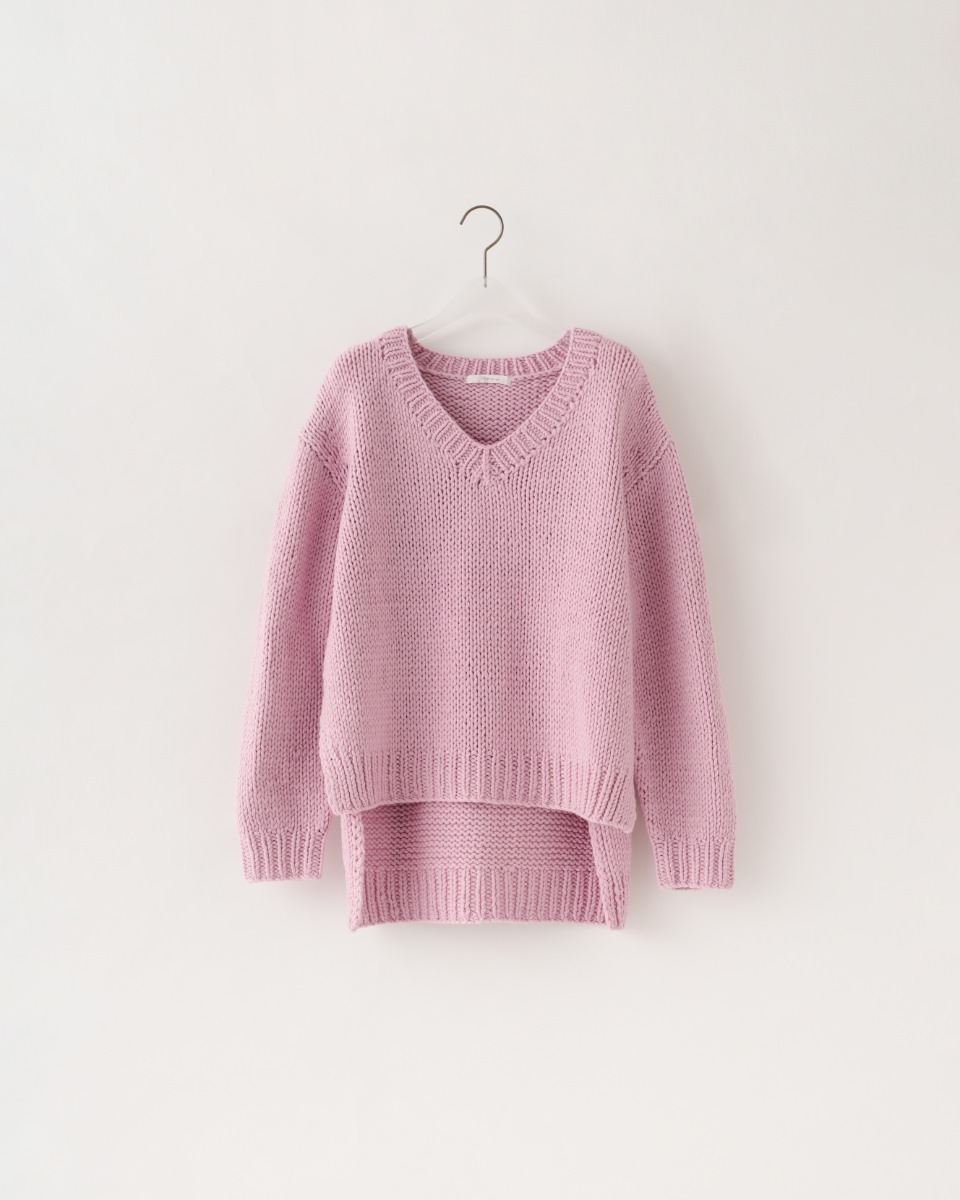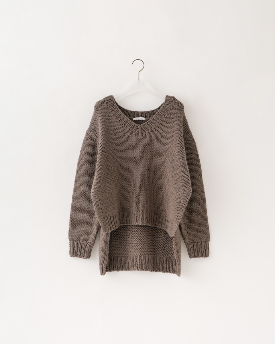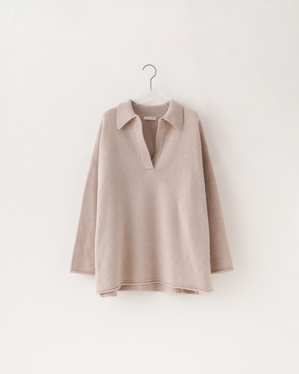 ベーシックなニットだからこそ肌触りの良い上質なものを。繊細で綺麗な編地で高級感のある1枚です。ニットには珍しくサイズ展開があり、ゆったりとしたシルエットです。1枚でも重ねても楽しめて重宝するアイテムです。