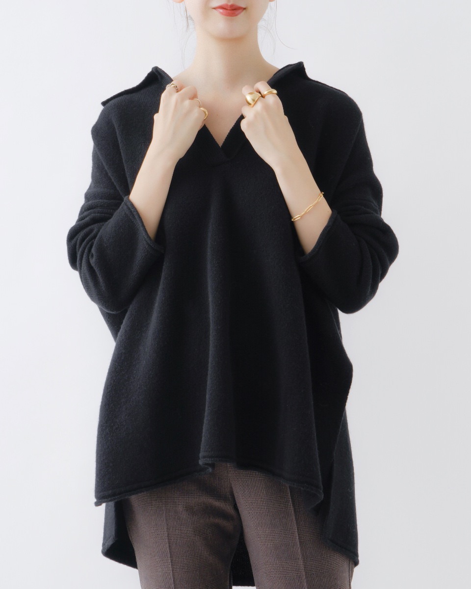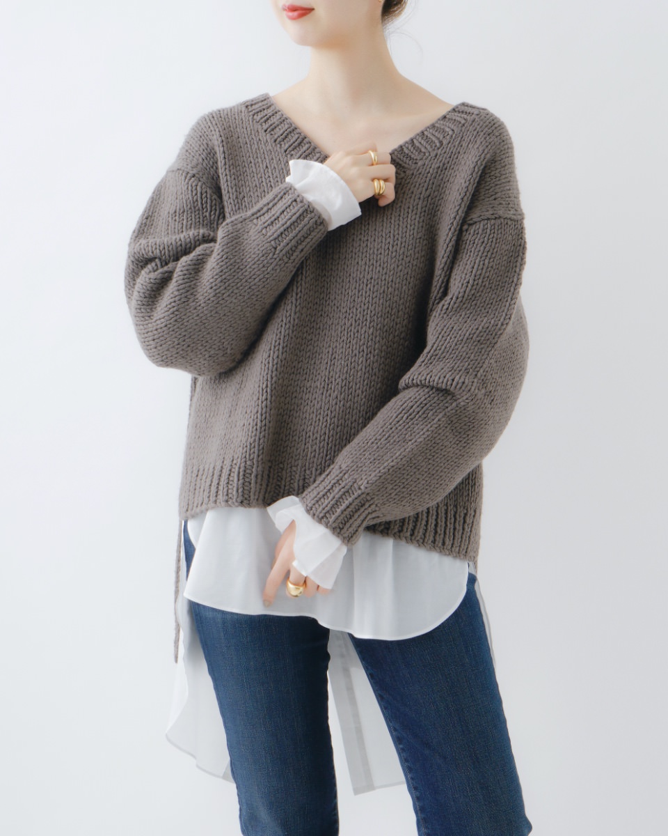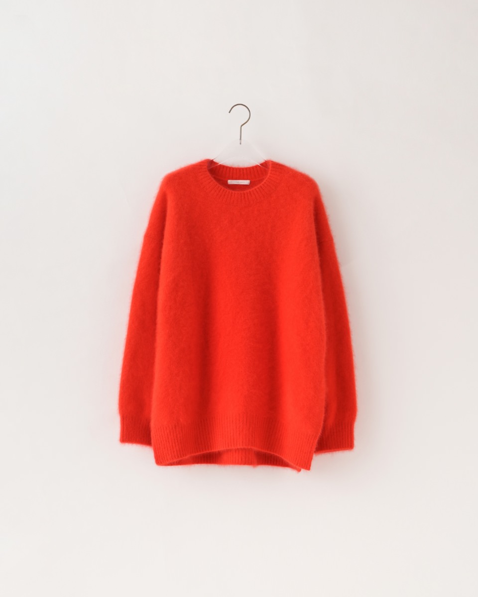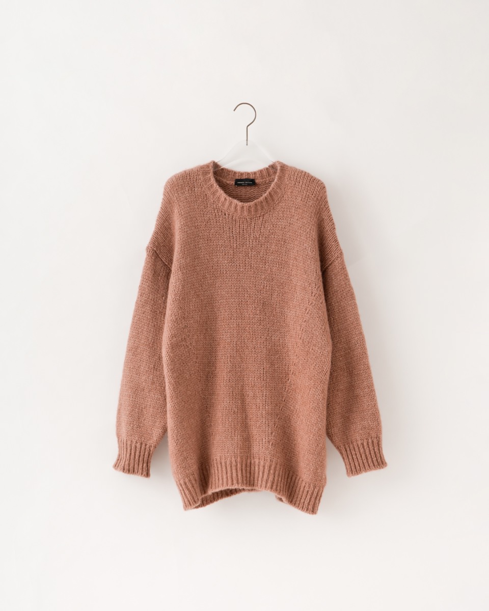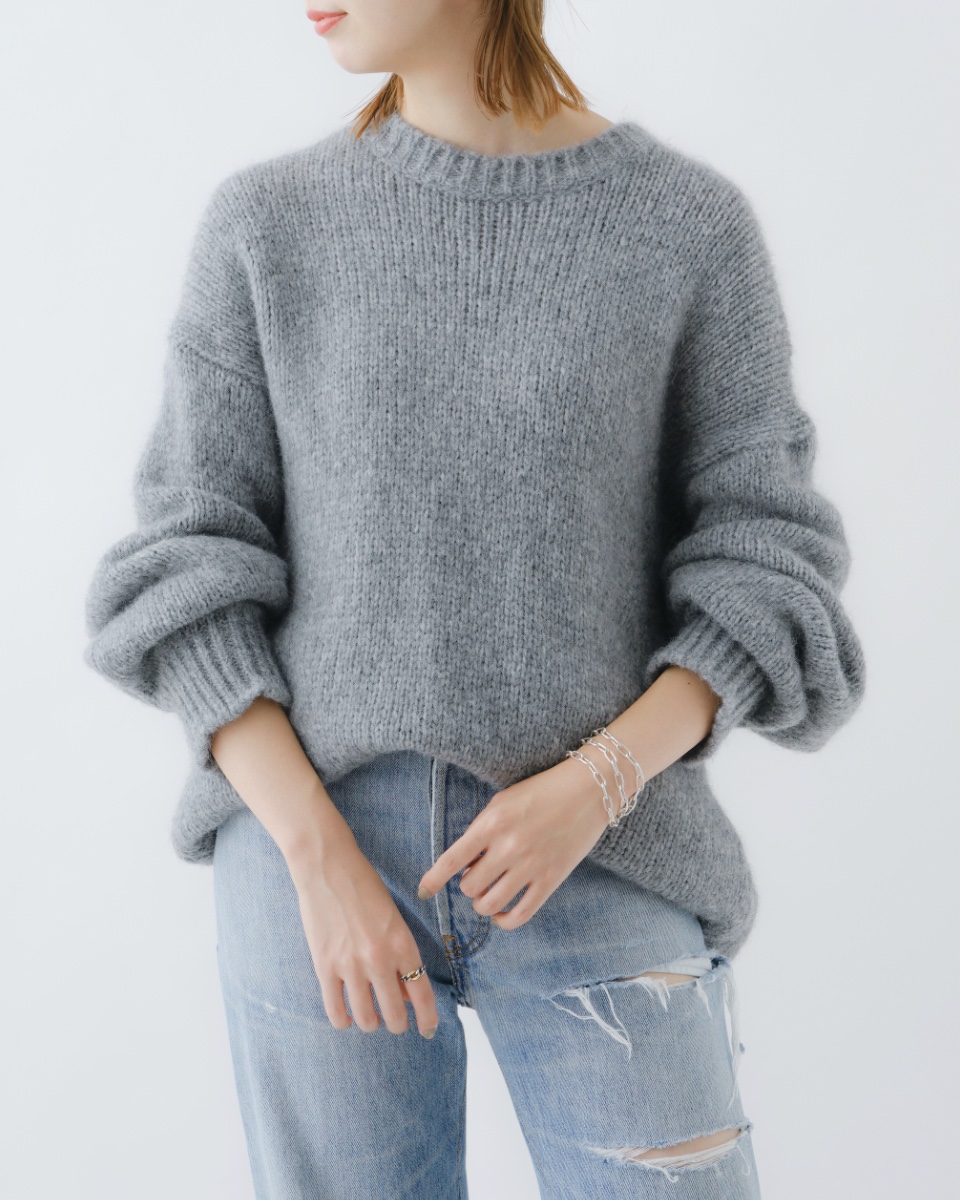少し大きめのサイズ感でスウェットのような感覚で着れるニット。サイドにスリットが入っているのでカットソーやシャツとレイヤードスタイルも楽しむことができます。肌触りの良さととても軽い着心地は一度着たら手放せません。