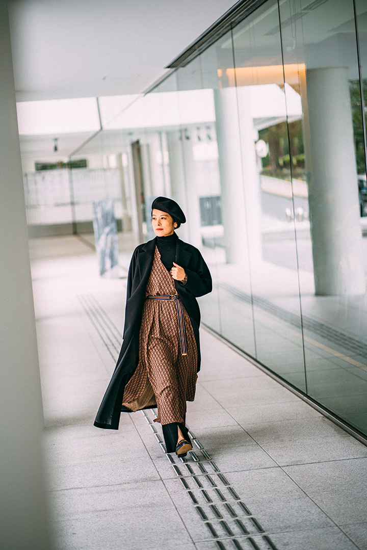 クラシックなラップコートは、レイヤードでオトナな遊び心を楽しみたい。VERMEILオリジナルのモノグラムワンピースなら、レトロシックな雰囲気をまとえて華やかさもプラス。リラクシングなリブパンツの合わせで今時な抜け感も差し込んで。
