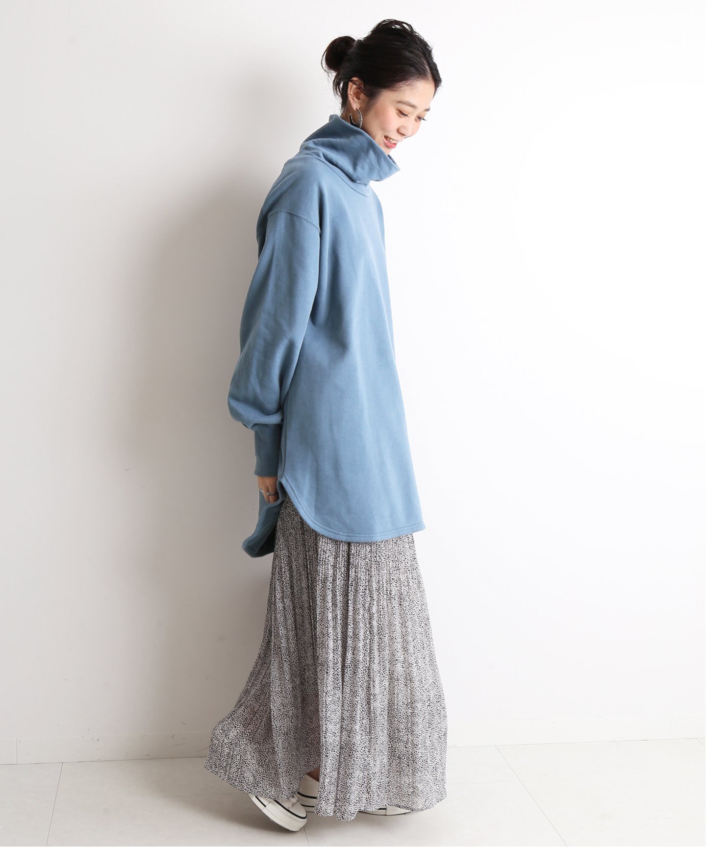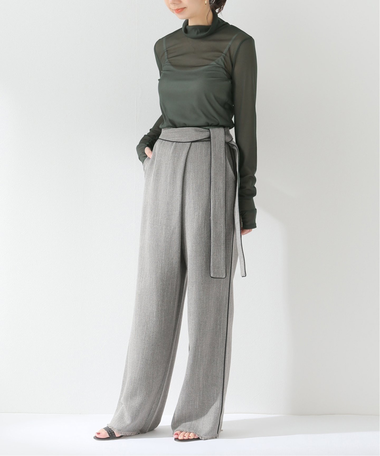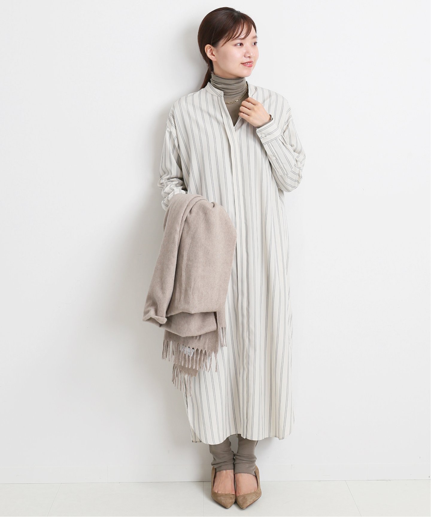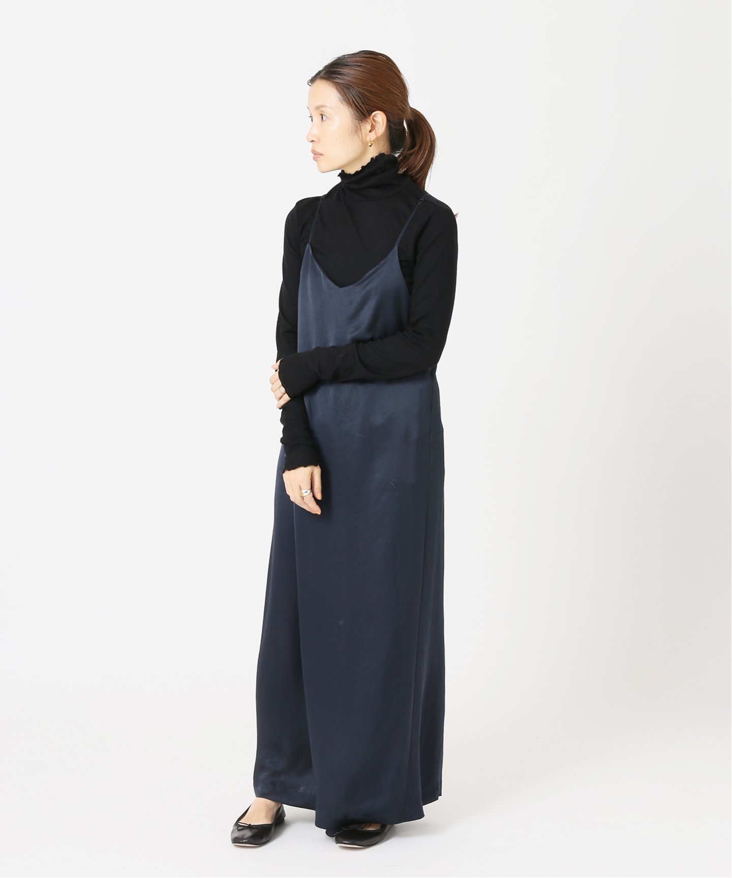 タートルネックトップスのレイヤーがおすすめ。