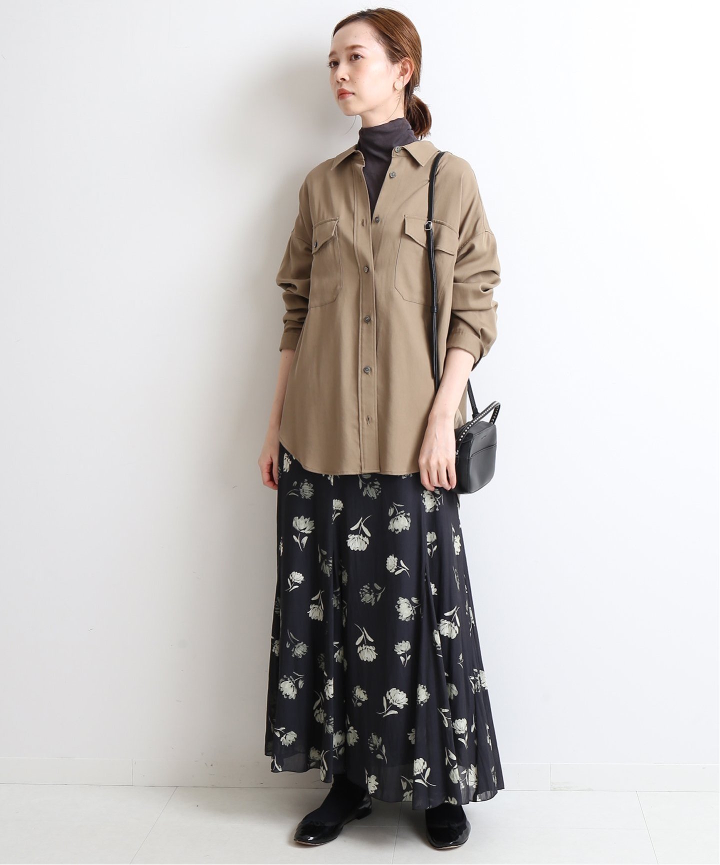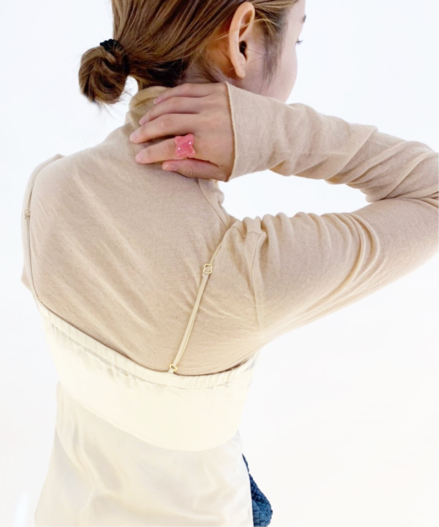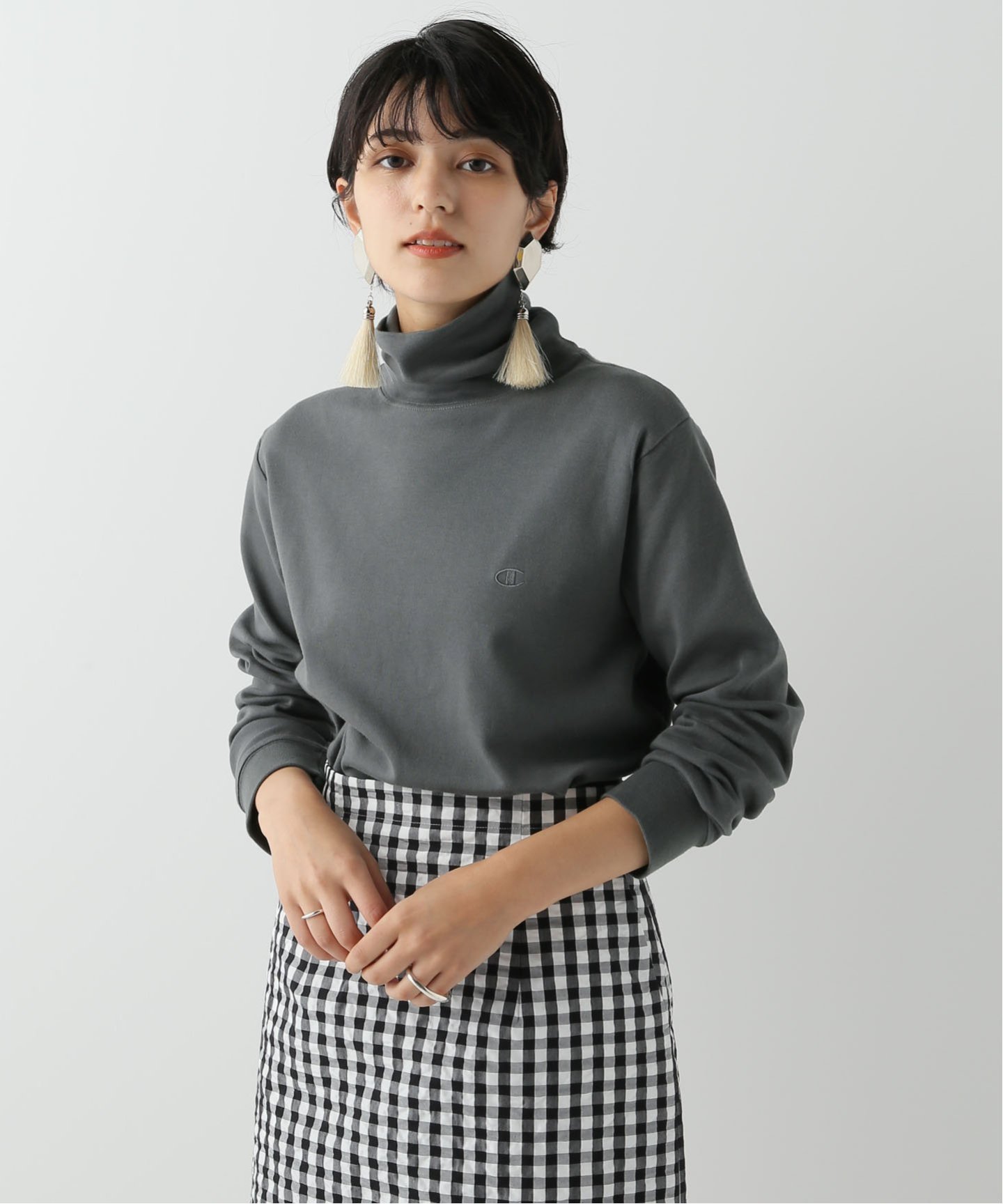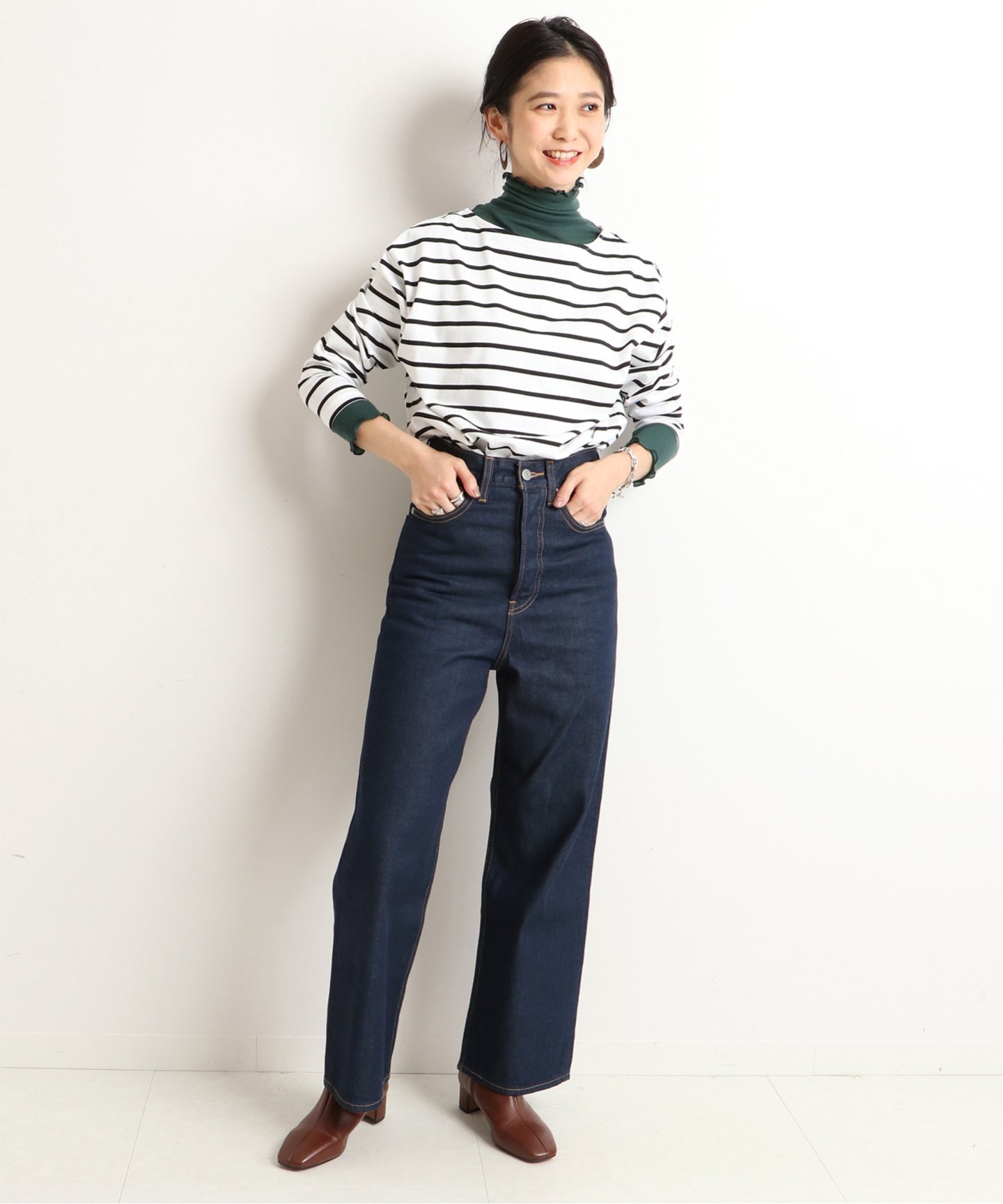 タートルネックトップスのレイヤーがおすすめ。