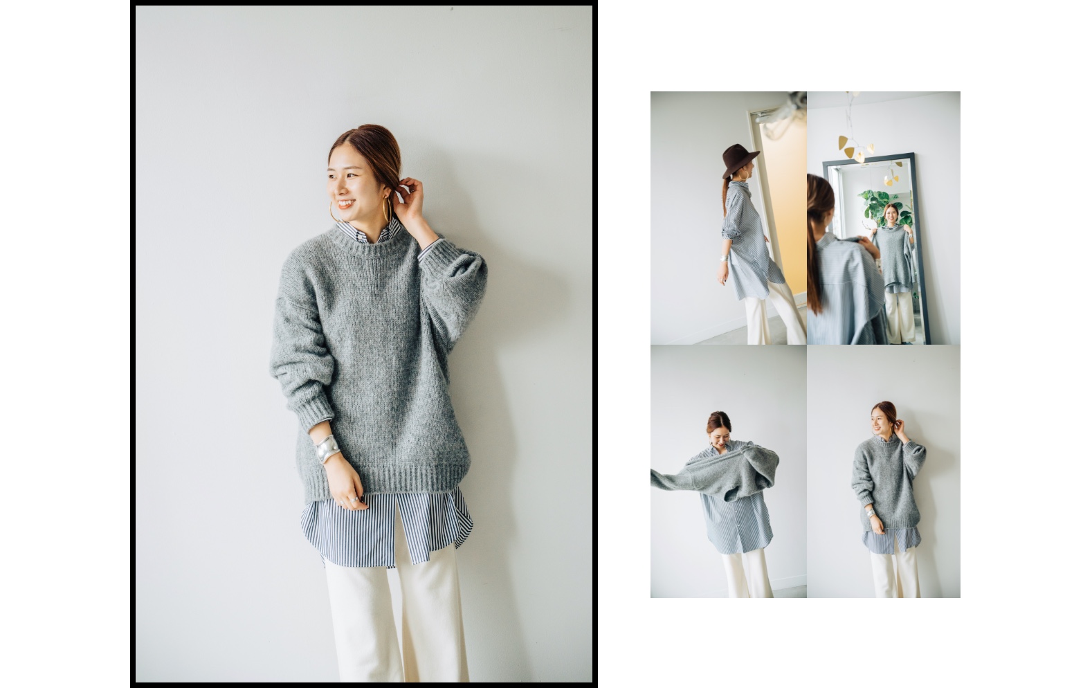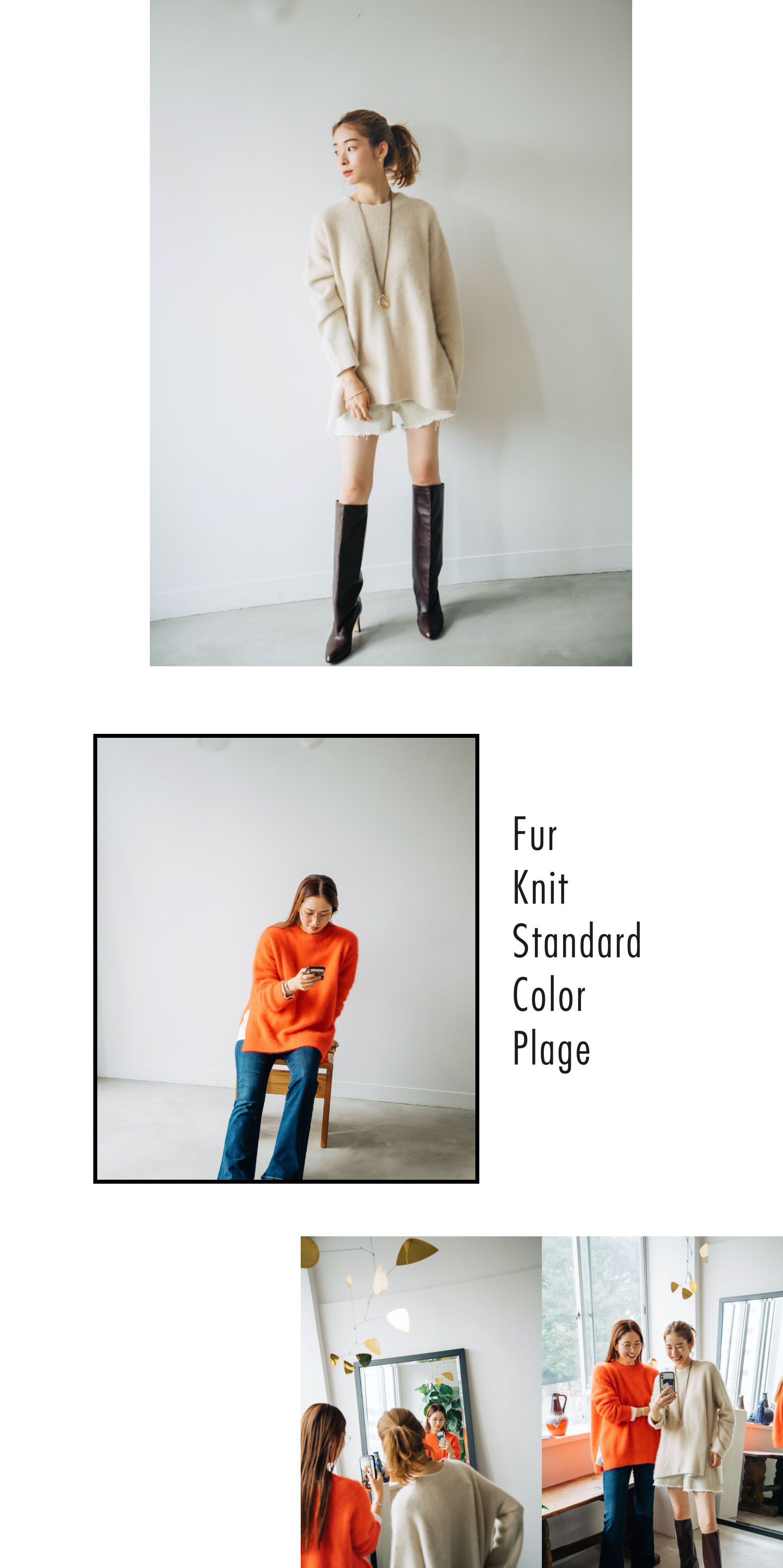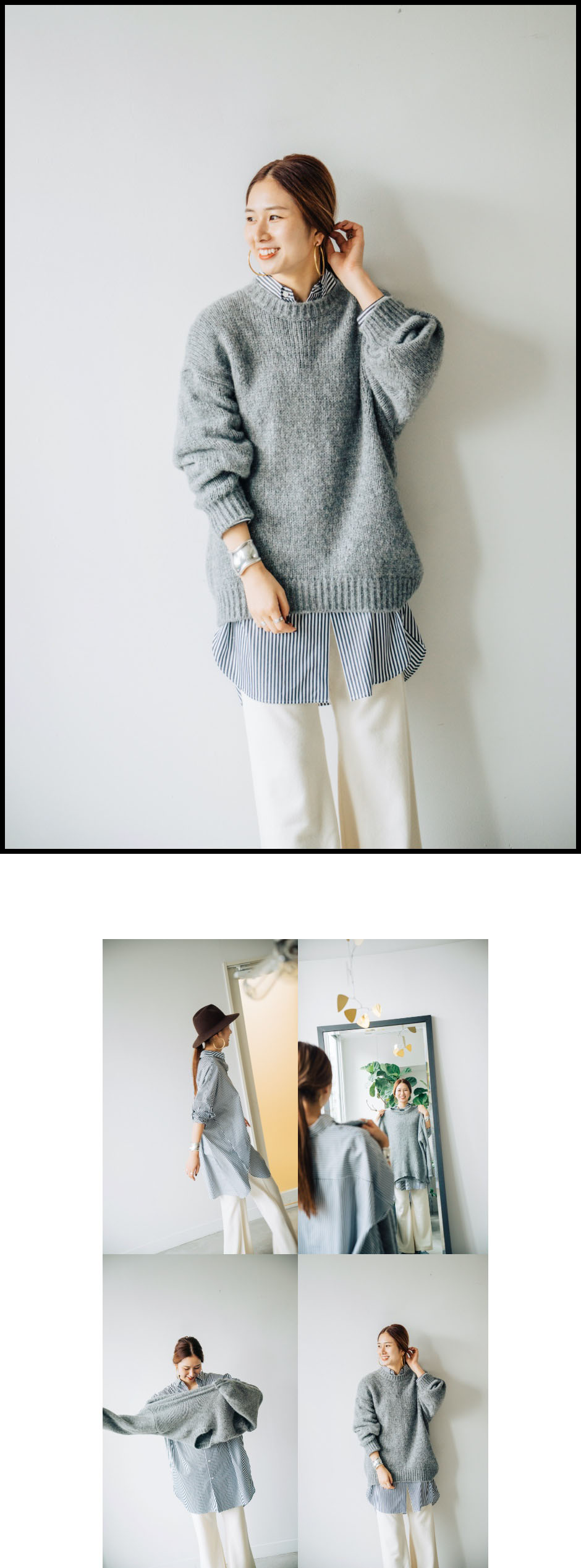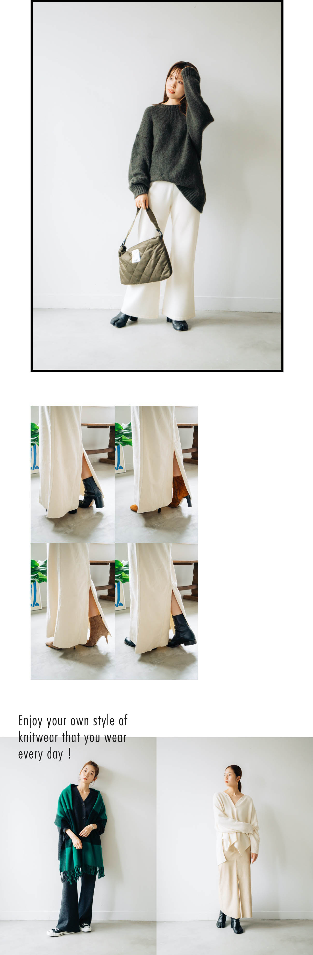 Plageのニットをスタッフはどう着る? 同じニットでも着こなしはいろいろ。 自分らしいスタイリングを楽しんで。 PlageFur クルースリットプルオーバー◆¥25,850(税込)Plage5PK short パンツ¥16,500(税込)Plage【NEBULONIE/ネブローニ】NAPPA ブーツ◆¥90,200(税込)PlageFur クルースリットプルオーバー◆¥25,850(税込)PlageFur クルースリットプルオーバー◆¥25,850(税込)PlageTypewriter Long シャツ3◆¥17,600(税込)Plage【JANESSA LEONE/ジャネッサ レオン】BARRET ハット¥29,700(税込)PlagePreciousタートル プルオーバー◆¥22,000(税込)Plage5PK short パンツ¥16,500(税込)Plageクロップドストレートパンツ◆¥17,600(税込)PlageTWプレスパンツ◆¥22,000(税込)Plage【R’IAM】Washable WOOL カーディガン◆¥26,400(税込)Plage【R’IAM】Washable WOOL パンツ◆¥22,000(税込)Plage【THROW/スロー】 ROBIN スカーフ¥38,500(税込)Plage【R’IAM】フェイクスウェード スカート◆¥25,300(税込)