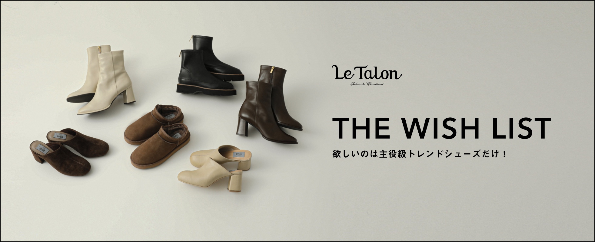 -オシャレは足元から- レイヤードやアウター等、オシャレの幅とファッションを楽しみたい気持ちが強まる秋冬。 いつものコーディネートにプラスするだけで“今年っぽく”格上げしてくれる主役級トレンドシューズを集めました。LE TALONGRISE ムートンスリッポン◆¥2,860(税込) 80%OFFLE TALONGRISE 7cmレザーチャンキーヒールショートブーツ◆¥4,840(税込) 80%OFFLE TALONLe Talon ジャガードキンチャク¥2,695(税込) 50%OFFLE TALONGRISEトラックソールショートブーツ◆¥2,860(税込) 80%OFFLE TALONGRISE トラックソールショートブーツ◆¥10,010(税込) 30%OFFLE TALONGRISE 6.5cmチャンキーヒールミュール◆¥2,156(税込) 80%OFFLE TALONLe Talon ジャガードキンチャク¥2,695(税込) 50%OFFLE TALONLe Talon ジャガードキンチャク¥2,695(税込) 50%OFFLE TALONLE TALON キッドゴートショッパーバッグ◆¥7,700(税込) 50%OFFLE TALONLE TALON レッキスフウショッパーバッグ◆¥5,148(税込) 40%OFFLE TALONGRISE ムートンスリッポン◆¥2,860(税込) 80%OFFLE TALONGRISE 7cmレザーチャンキーヒールショートブーツ◆¥4,840(税込) 80%OFFLE TALONGRISEトラックソールローファー◆¥1,210(税込) 90%OFFLE TALONGRISEトラックソールショートブーツ◆¥2,860(税込) 80%OFFLE TALONGRISE トラックソールショートブーツ◆¥10,010(税込) 30%OFFLE TALONGRISE 7cmプラットフォームショートブーツ◆¥2,640(税込) 80%OFFLE TALONGRISE 6.5cmチャンキーヒールミュール◆¥2,156(税込) 80%OFFLe Talon / Brand Page