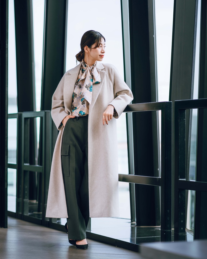 - 上質でミニマルなデザインのコートはどんなスタイルにも羽織りやすい!