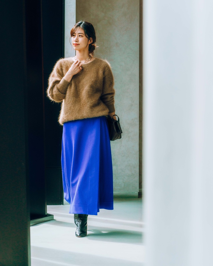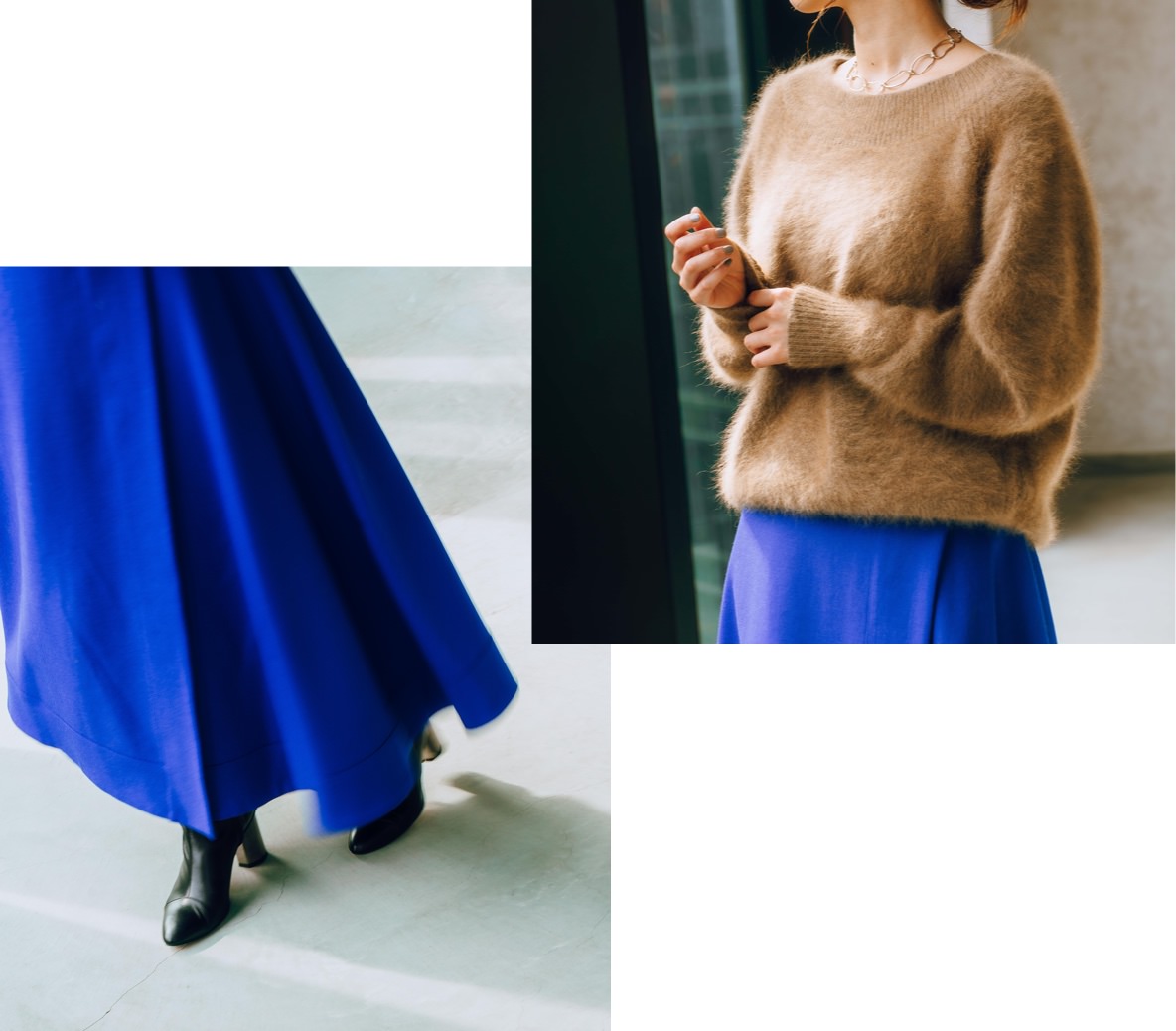 - 着映えスカートは思い切ったカラーリングでドラマチックに楽しんで。