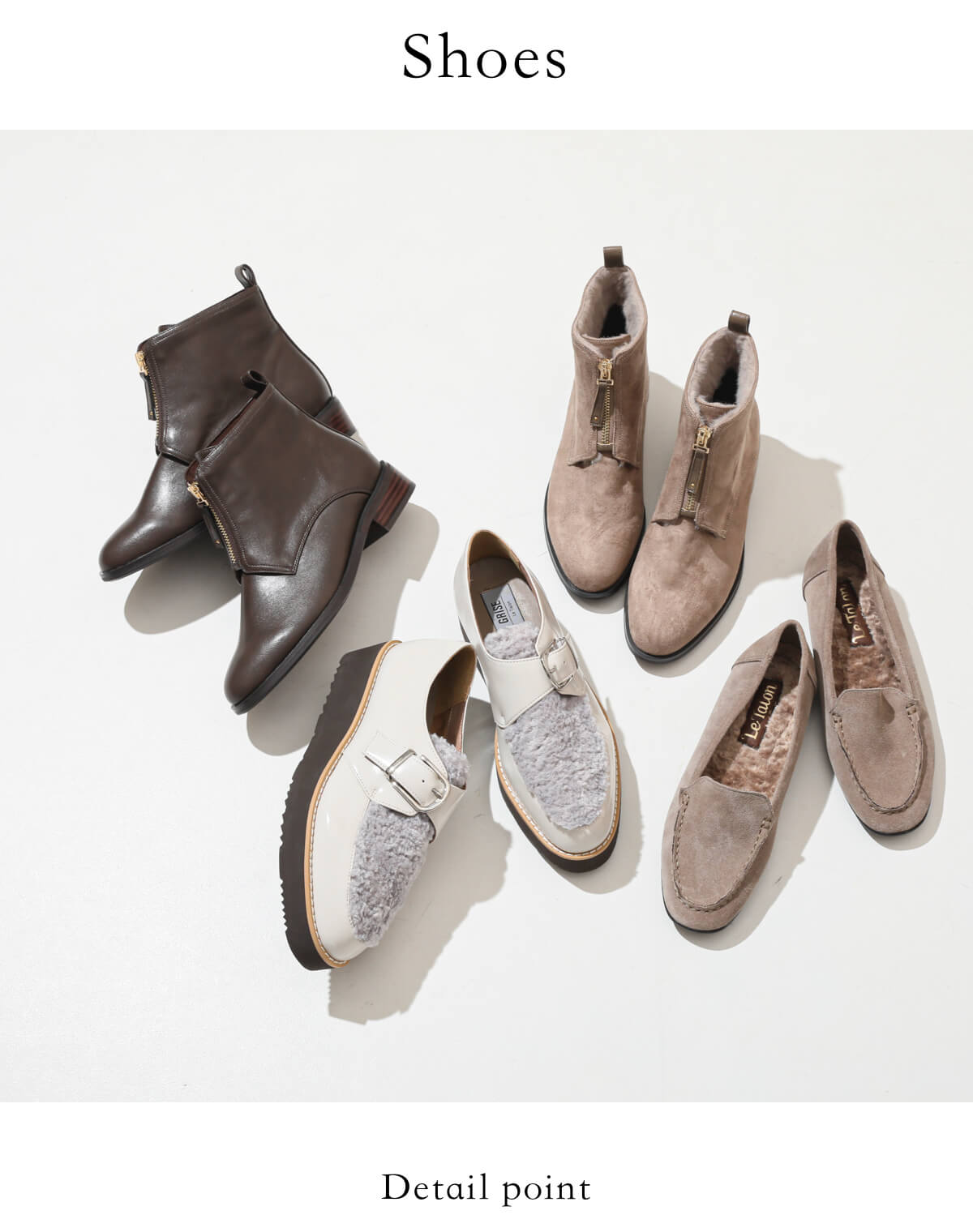 ボア付きのローファーなど、ちょっと個性的なアイテムも