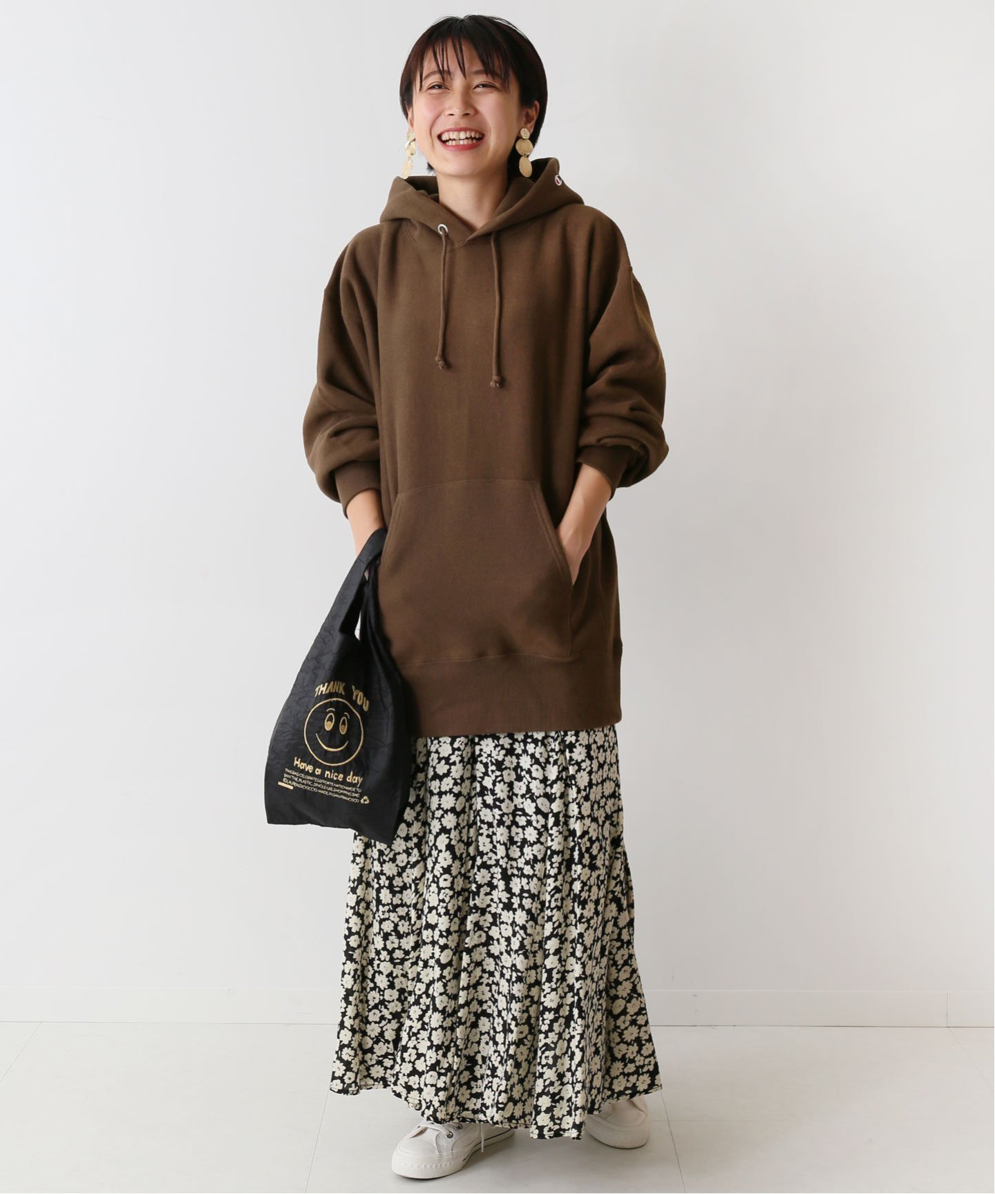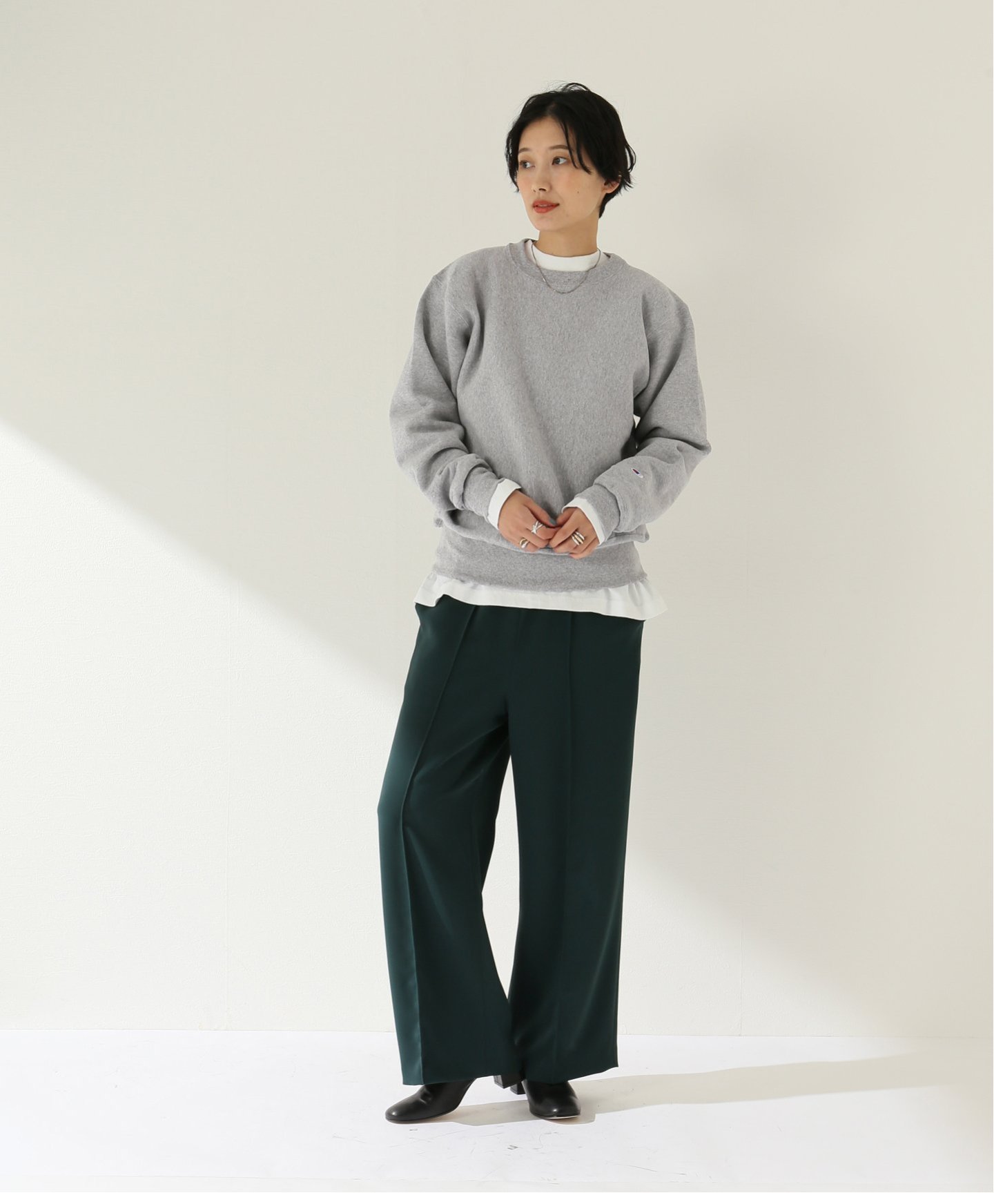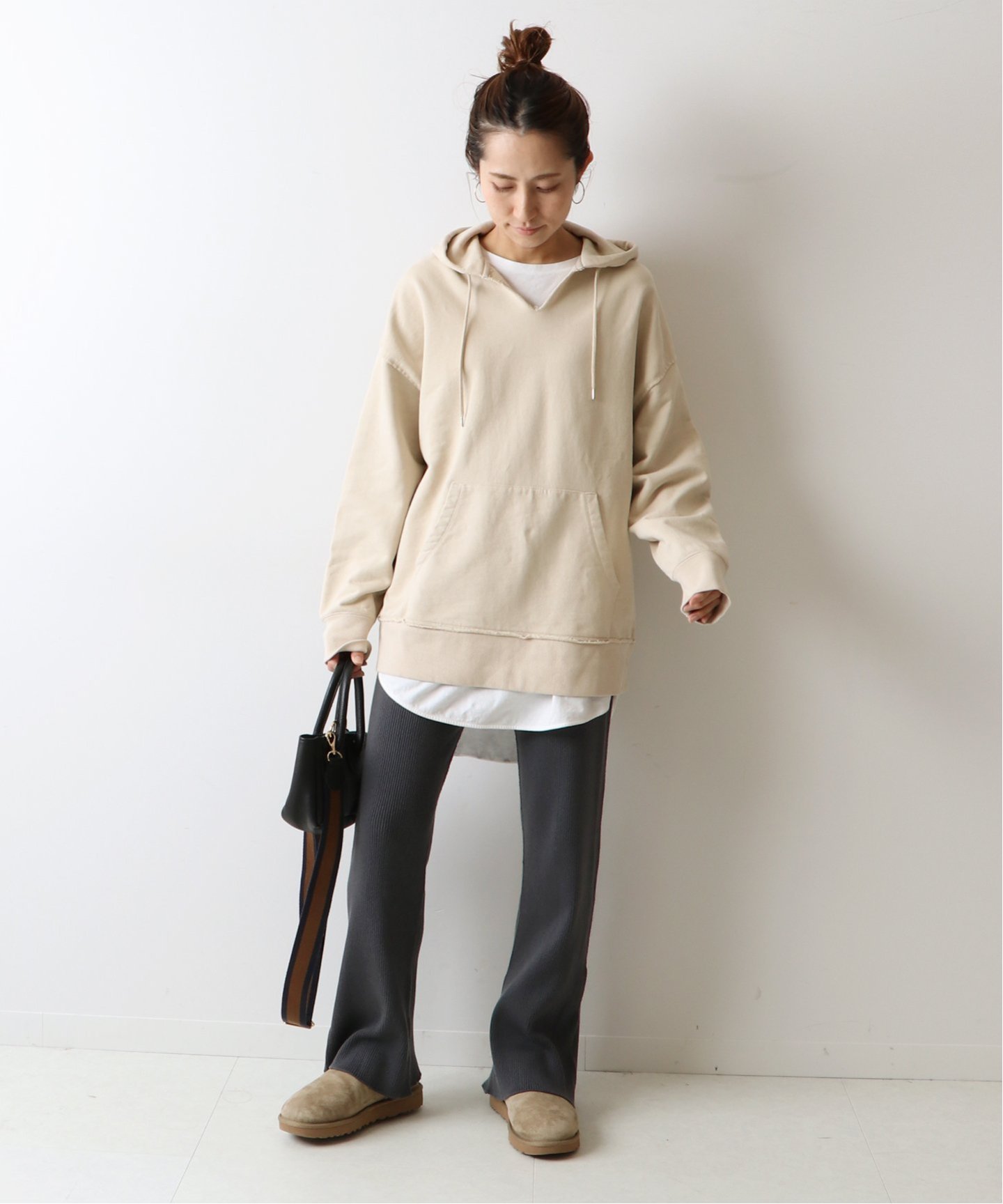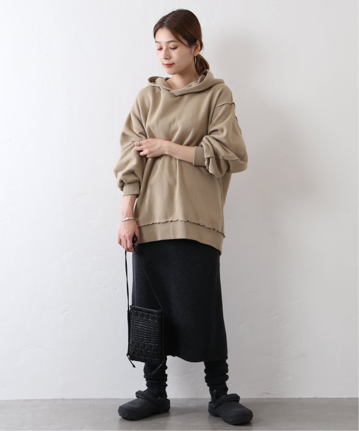 フーディは、着回し力抜群の万能色。フェミニンな