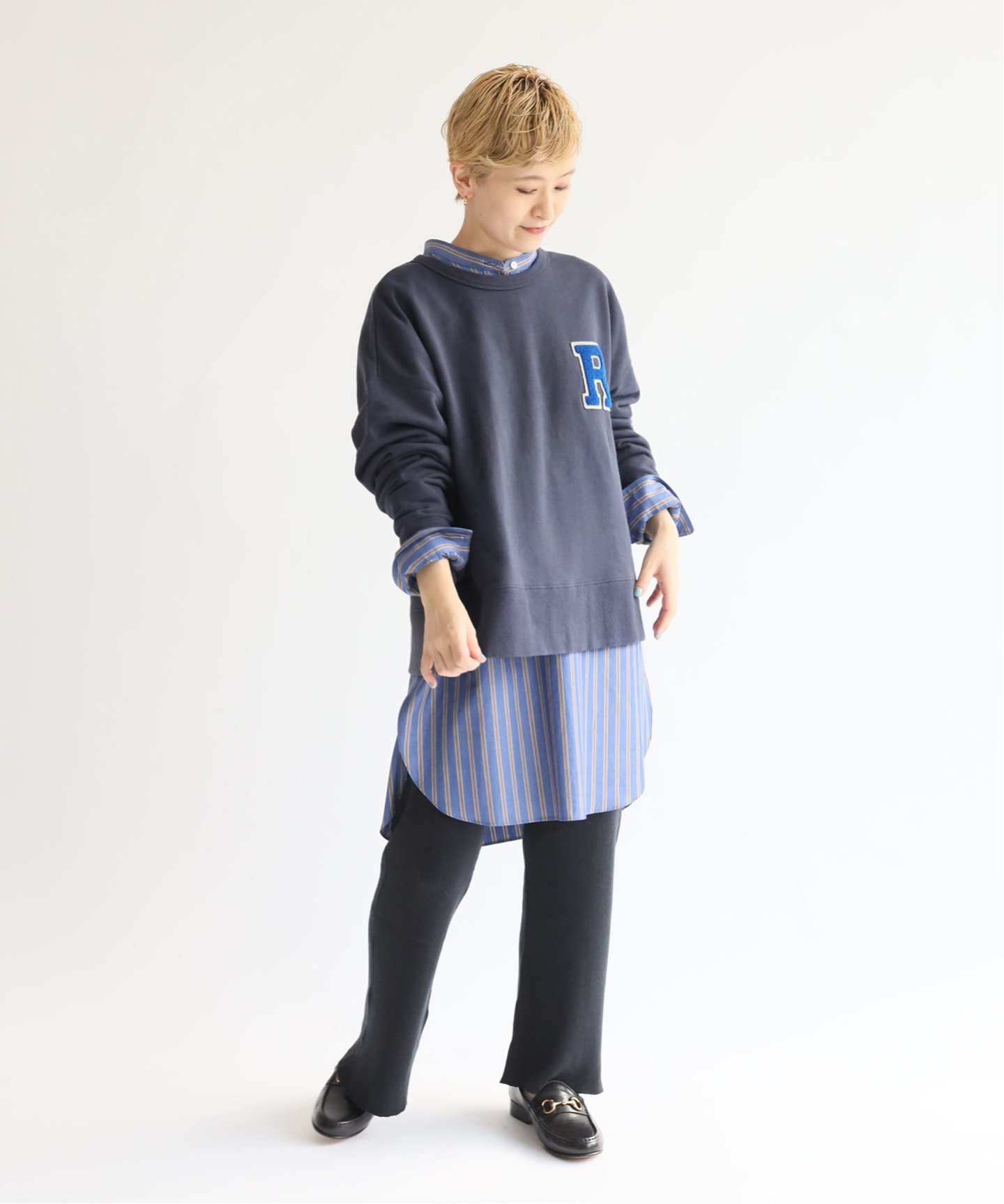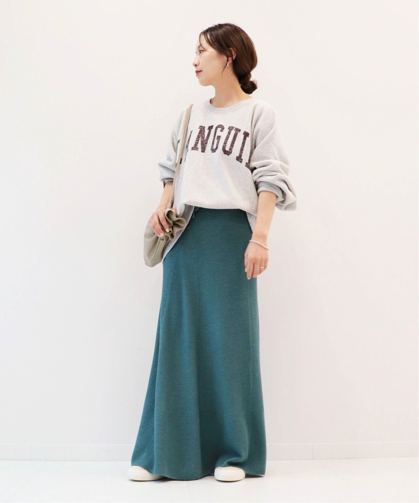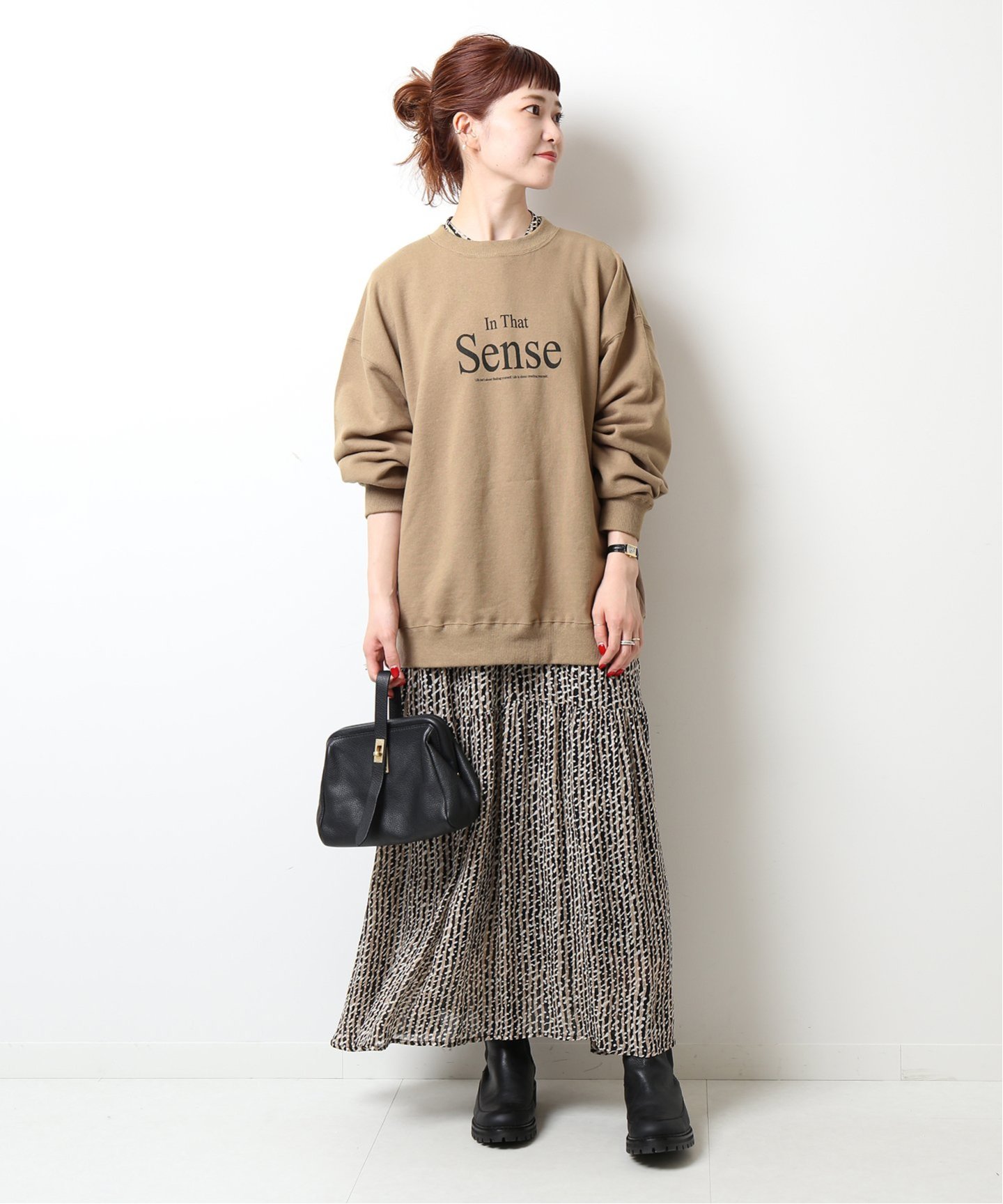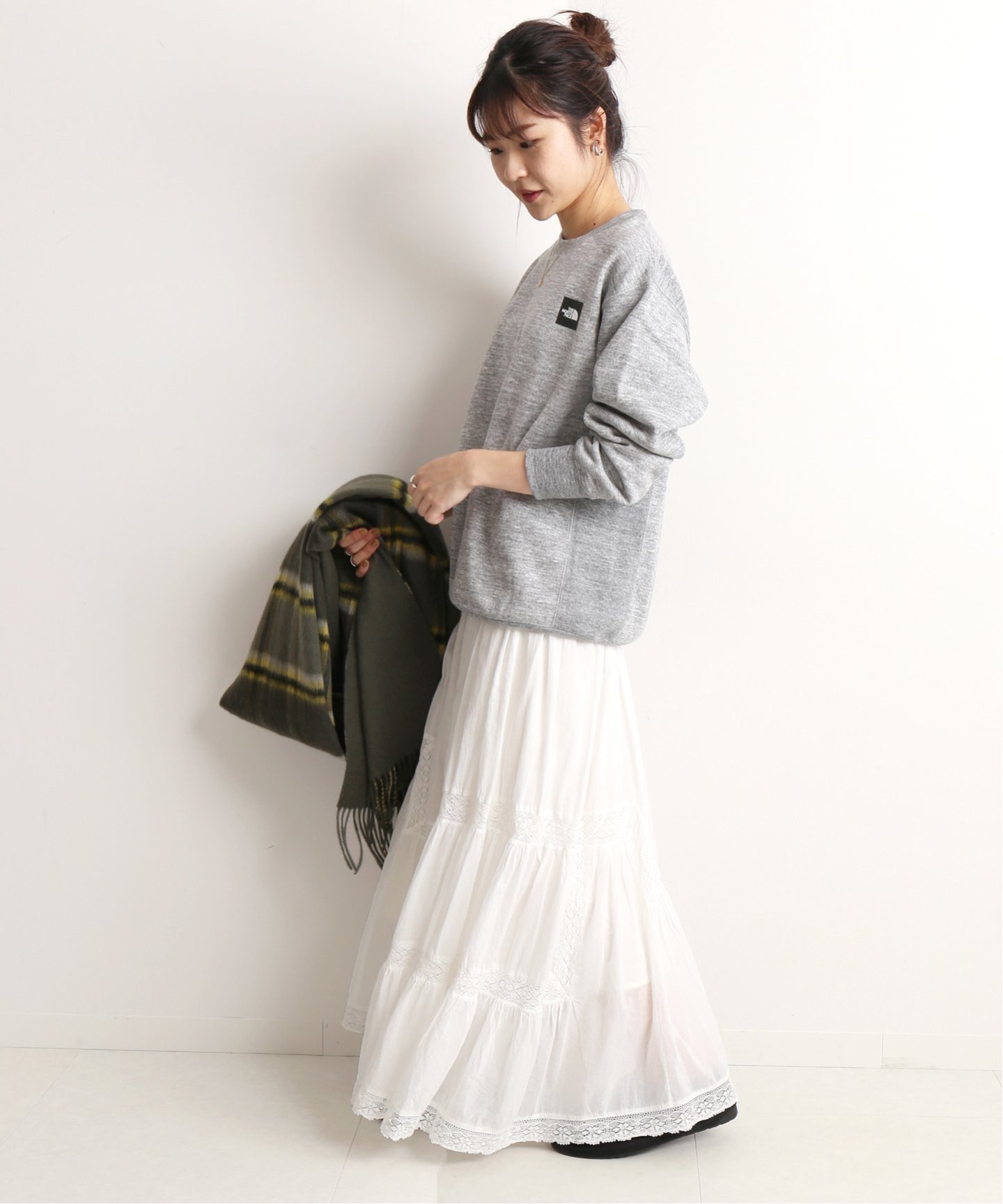 スカートと合わせることで、甘さを