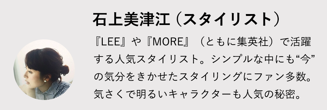 人気スタイリストの石上美津江さんにご提案いただきました。