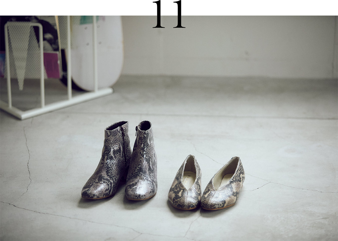 どこかアニマル柄を入れると今年らしくなります。特にトレンドの茶系のお洋服とパイソンはとても相性が良いです。アニマル初心者なら是非シューズで取り入れてみてください。大人っぽくかつ、抜け感があるコーディネートになります。