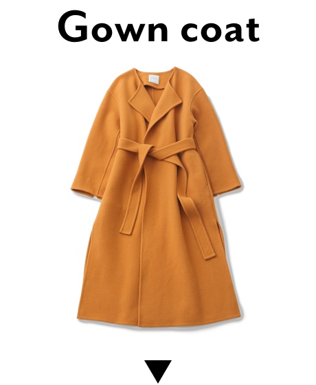 さらっと羽織れるガウンコートは、ウエストをベルトマークすればさらにこなれ感もアップ。