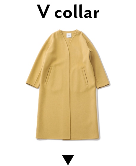 Vネックコートなら首回りをスッキリと見せて、スタイルアップ。