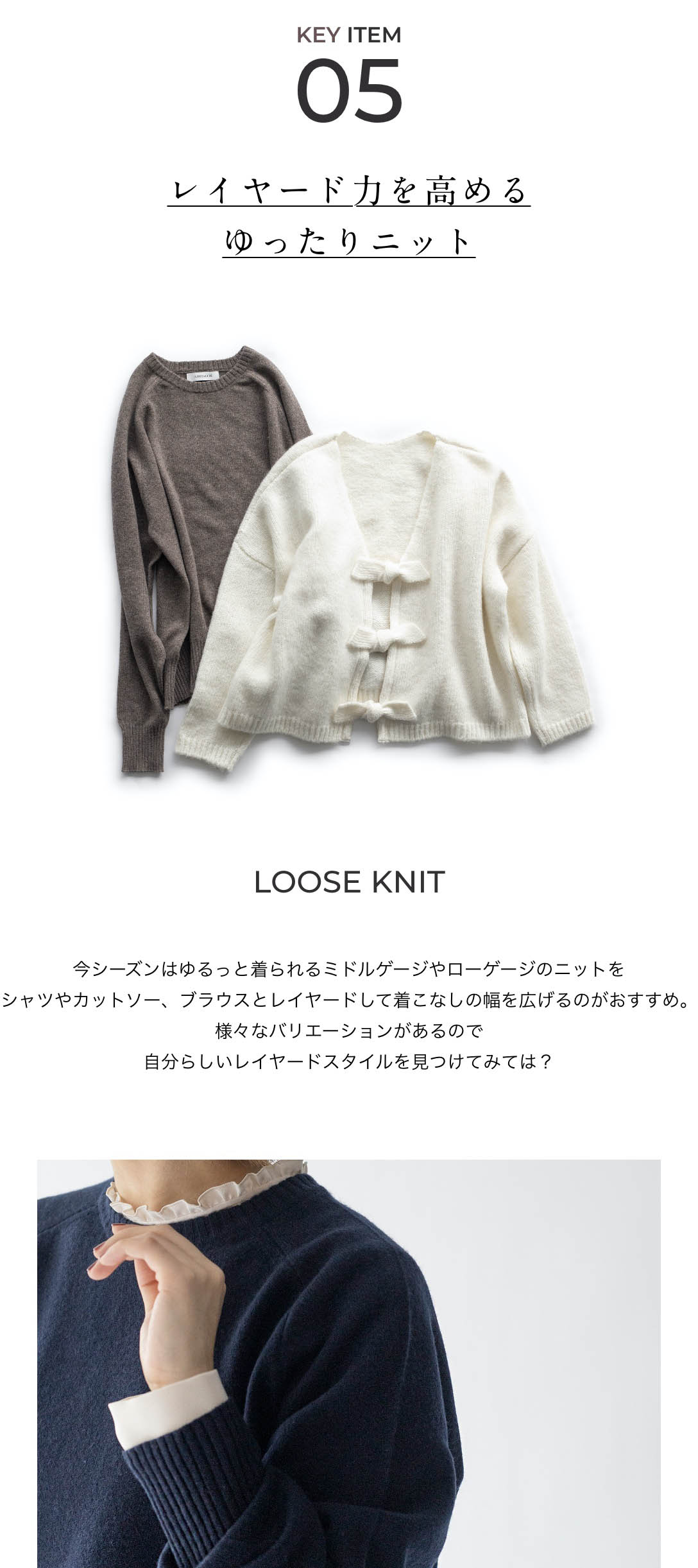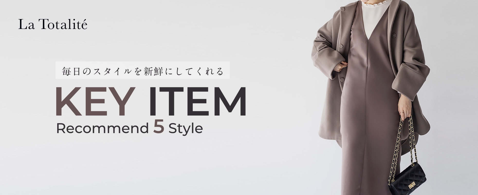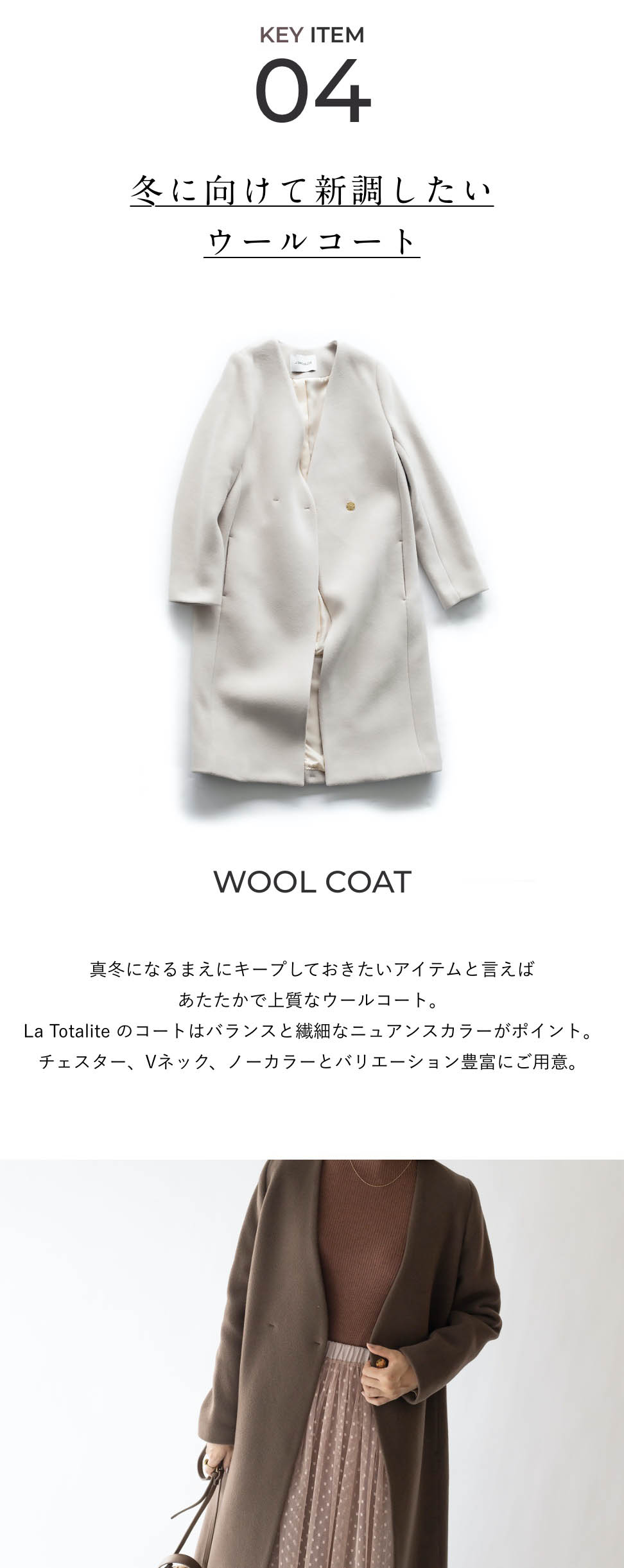 シンプルな定番服に加えるだけで見違える、 秋冬ファッションの主役として映える注目のアイテムをピックアップ! 1つのキーアイテムで2つのスタイリングをご紹介します。 La Totaliteスエードサロペットフレアスカート◆¥17,600(税込)La Totaliteウールカシミヤハイネックプルオーバー◆¥14,300(税込)La Totaliteリブタートルネックプルオーバー¥12,100(税込)La Totalite【ENES/エネス】キルティングバレエシューズ¥14,300(税込)La Totalite【BLEU FORET/ブルーフォレ】タイツ¥3,520(税込)La Totaliteベロアキルティングコート◆¥28,600(税込)La Totaliteウールカシミヤハイネックプルオーバー◆¥14,300(税込)La Totaliteウールライク マリン パンツ◆¥17,600(税込)La Totaliteワッシャーツイルキャミワンピース◆¥17,600(税込)La Totalite【MARCO MASI/マルコマージ】ミニ巾着バッグ¥18,700(税込)La Totaliteバックツイストワンピース◆¥17,600(税込)La Totaliteカシミヤクルーネックプルオーバー◆¥12,100(税込)La Totalite《追加》ジョーゼットフリルブラウス◆¥14,300(税込)La Totaliteレギンスパンツ付きタイトスカート◆¥17,600(税込)La Totalite【追加】【MILOS/ミロス】 キルティングフラップバッグ◆¥13,200(税込)La TotaliteVネックノーカラーコート◆¥37,400(税込)La Totaliteカシミヤクルーネックプルオーバー◆¥12,100(税込)La Totalite【RED CARD /レッドカード】Marmalade Midrise¥20,900(税込)La Totaliteドットチュールスカート付きニットワンピース◆¥17,600(税込)La Totaliteカシミヤクルーネックプルオーバー◆¥12,100(税込)La Totalite《追加》ジョーゼットフリルブラウス◆¥14,300(税込)La Totaliteカシミヤクルーネックカーディガン◆¥14,300(税込)La Totalite【TICCA/ティッカ】スクエアビッグシャツ¥23,100(税込)La Totaliteウールリングポケットスカート◆¥15,400(税込)La Totaliteバックリボン2WAY プルオーバー◆¥17,600(税込)大切にしているのはエレガント、キュート、フレンチシック。 内側からにじみでる品の良さ。 そこに今ならではの感性をMIXして、 憧れのシネマヒロインのような洗練された女性を目指して。LaTotalit SHOP TOP