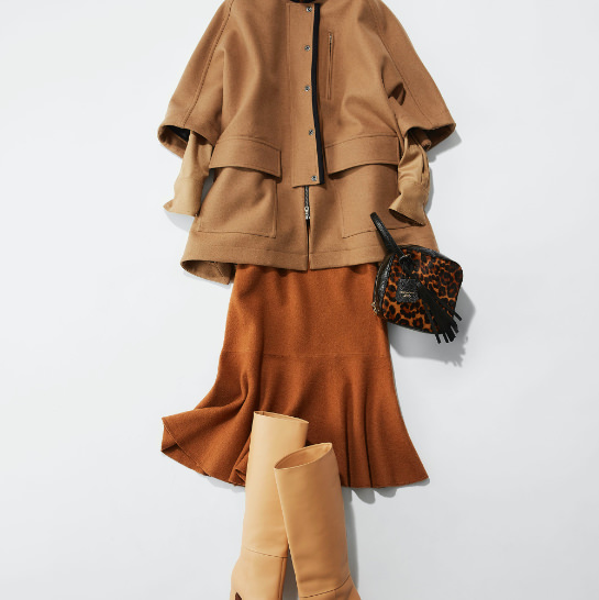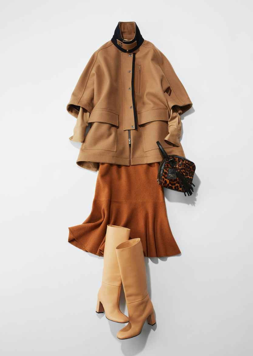 「ベージュ系のワントーンで揃えると暖かみのある女らしい雰囲気に。寒いシーズンにパッと華やかさがでてこの時期にぴったりなスタイリングだと思います。ただ気をつけないといけないのは、優しい色のワントーンでボヤっとした印象にならない様にどこかに締める色を加えること。今回はバッグのレオパード柄や、コートのネイビーが全体をピリッと締めてくれてます。」