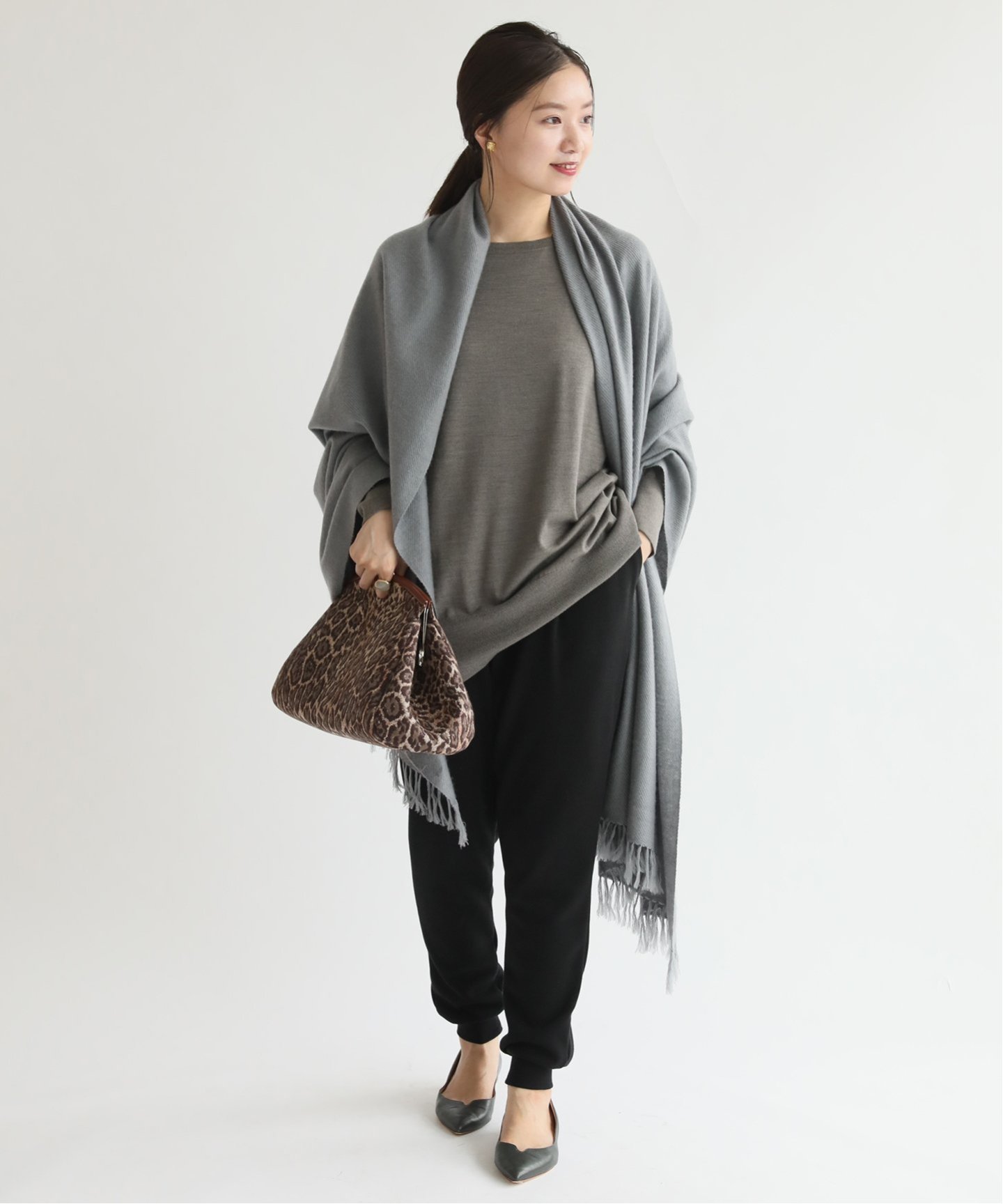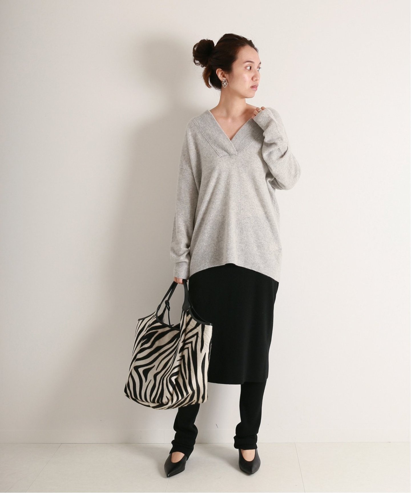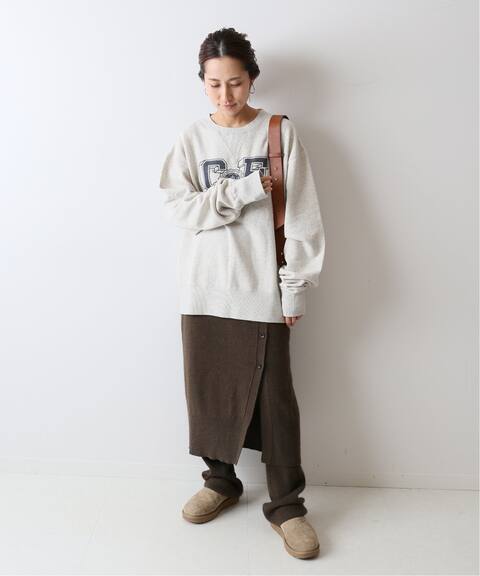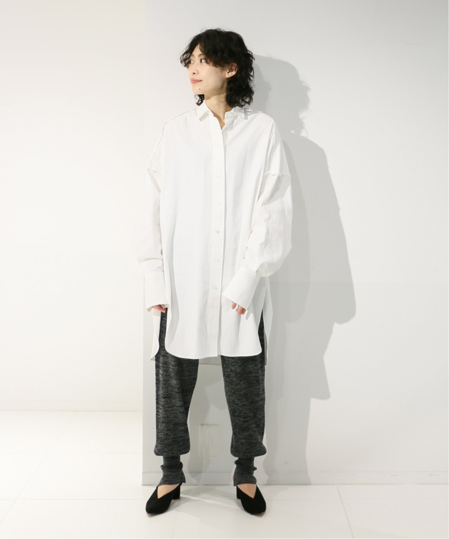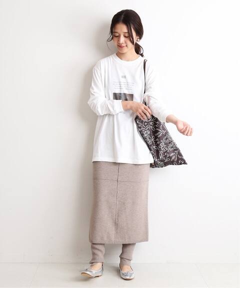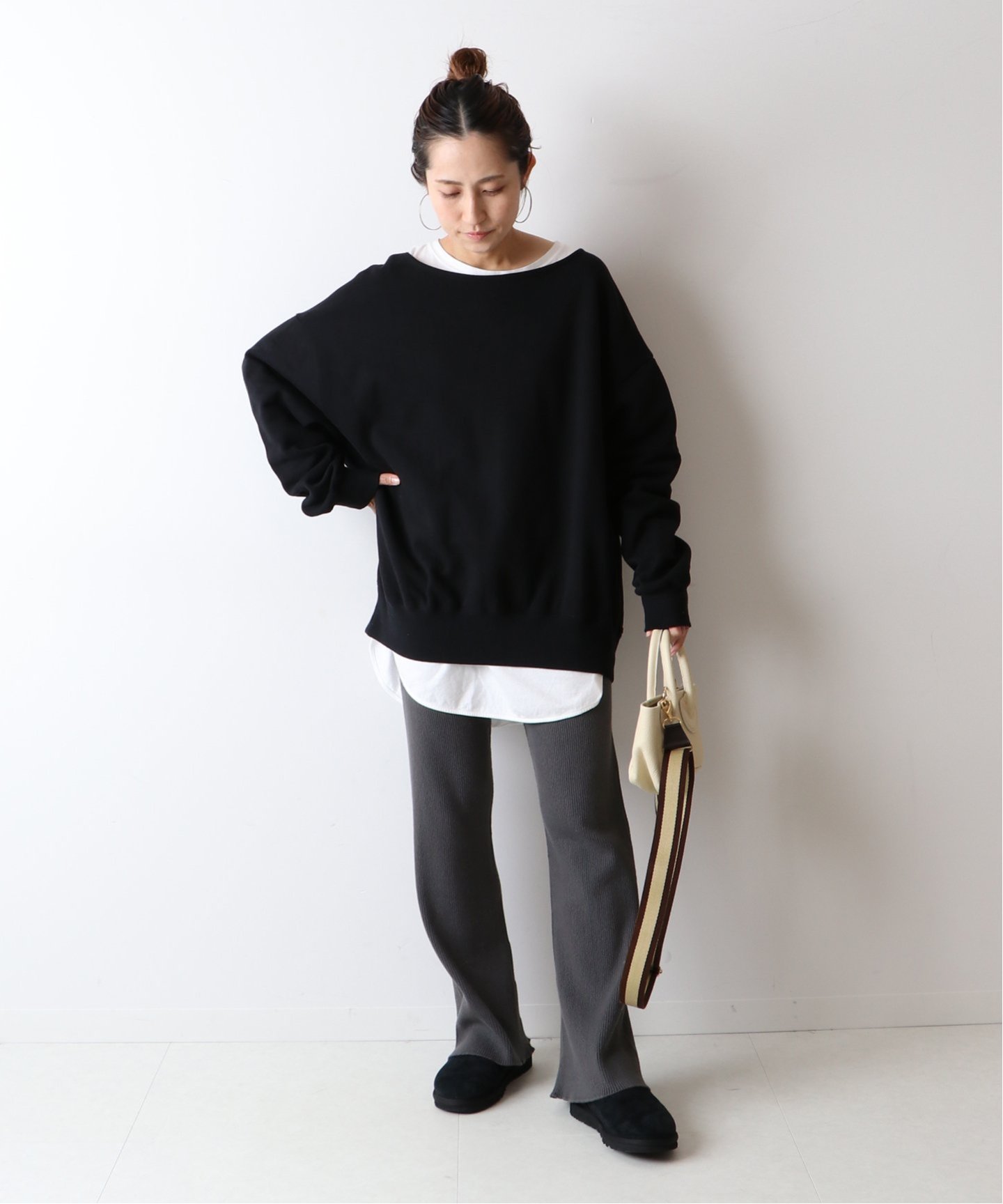 重ためコーデに抜け感を目を引くセンタースリット入りのリブパンツは