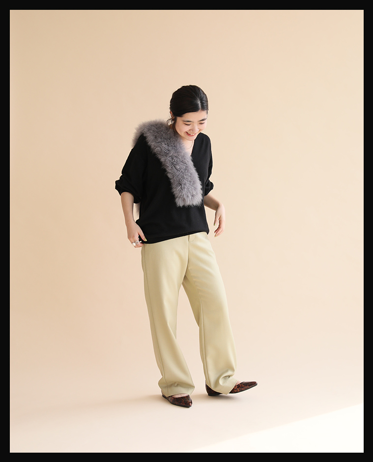 他のカラーを合わせてもケンカしない、白みがかった色味がポイント。
