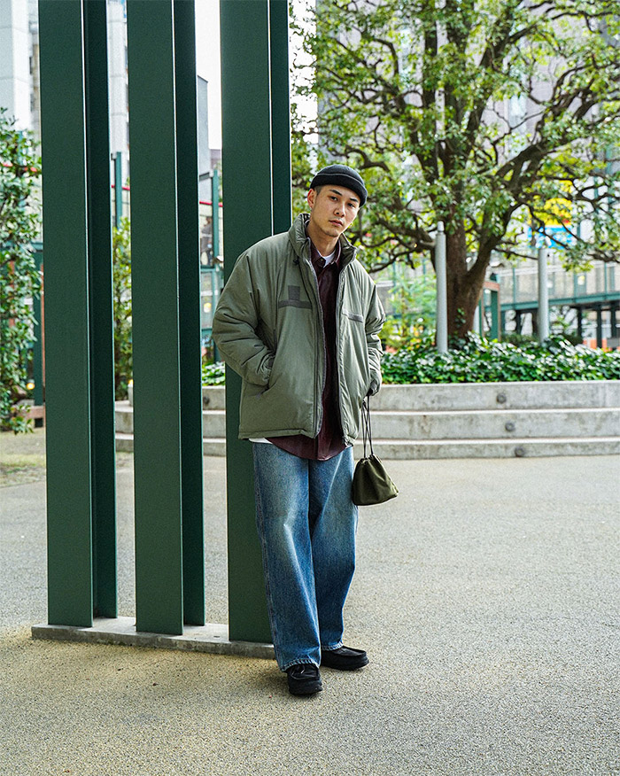- 首元が特徴的なJOINT WORKSオリジナルのダウンジャケットはスポーツ感が少なく マットな仕上がりに。少し明るめのアウターでスタイリングの幅も広がります。