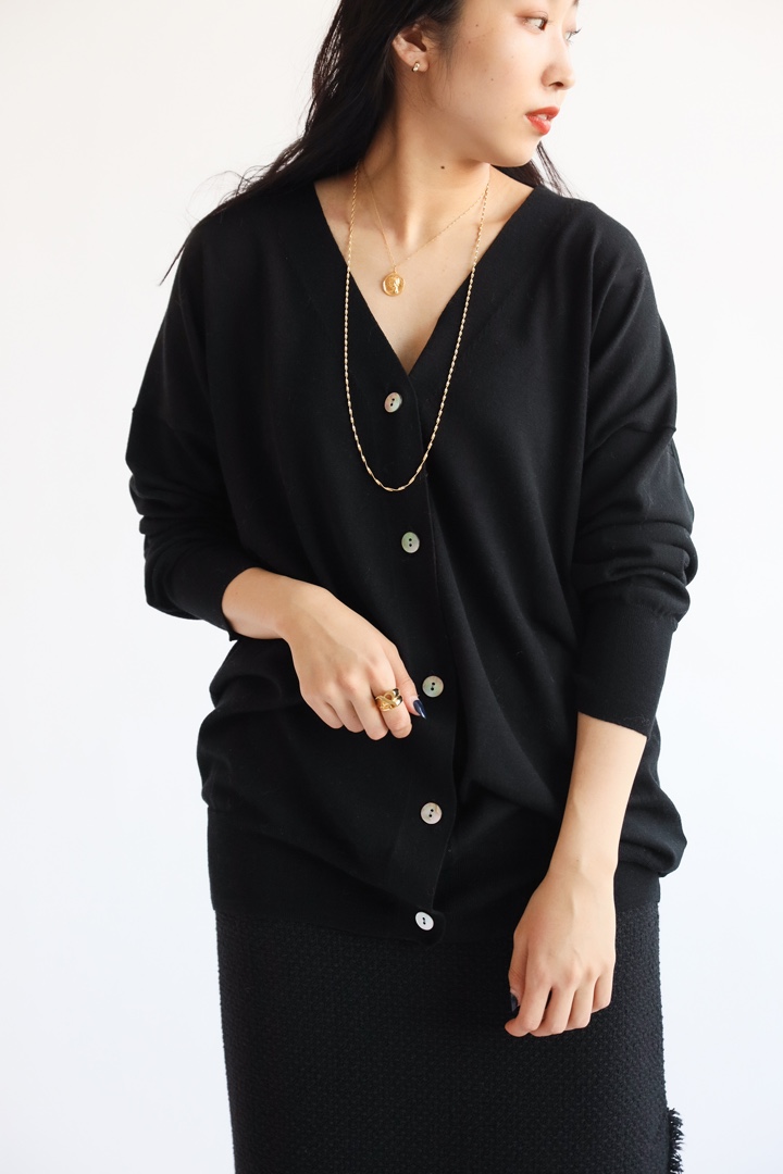 二重にも使える長さのロングネックレスを<HERMINA ATHENS>のコインネックレスと重ねて、リズムを加えて。- JOURNAL STANDARD L'ESSAGE《追加》CASH FEEL WOOL Vネックカーディガン◆2¥16,500(税込)