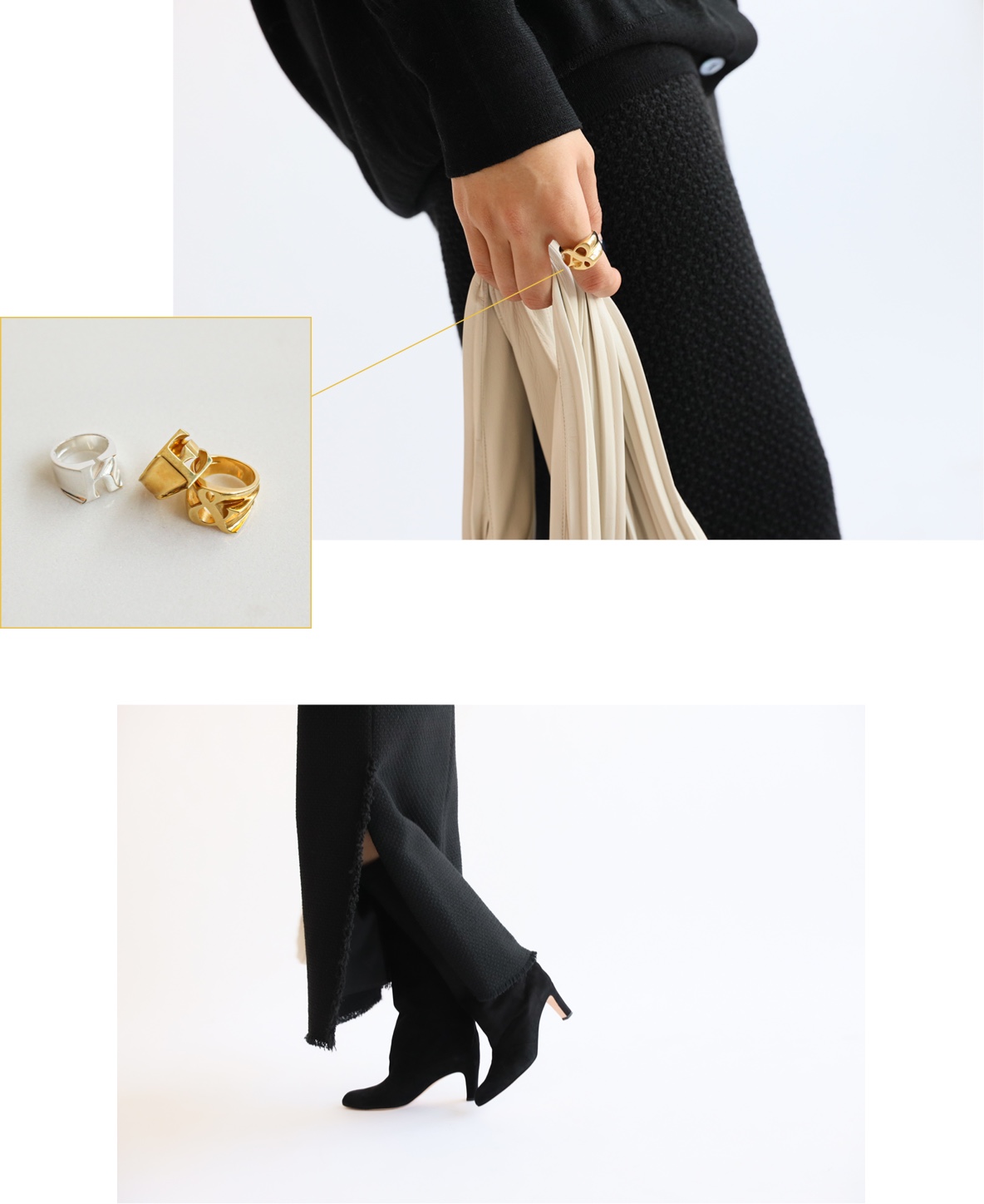 抜群の存在感とモダンなフォルムが人気の<THE LETTERING>のリングを手元にオン。
