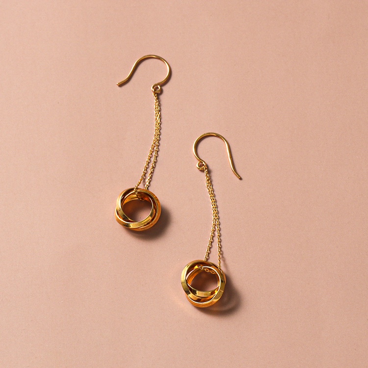イヤリングやピアスには、直感力や判断力を高めるパワーがあると言われています。金運を上げるなら、やはりゴールド。トリニティーのリングにはその縁が幸せを呼び、永遠に続くというラッキーな意味もあり、ジュエリーモチーフとして使われます。