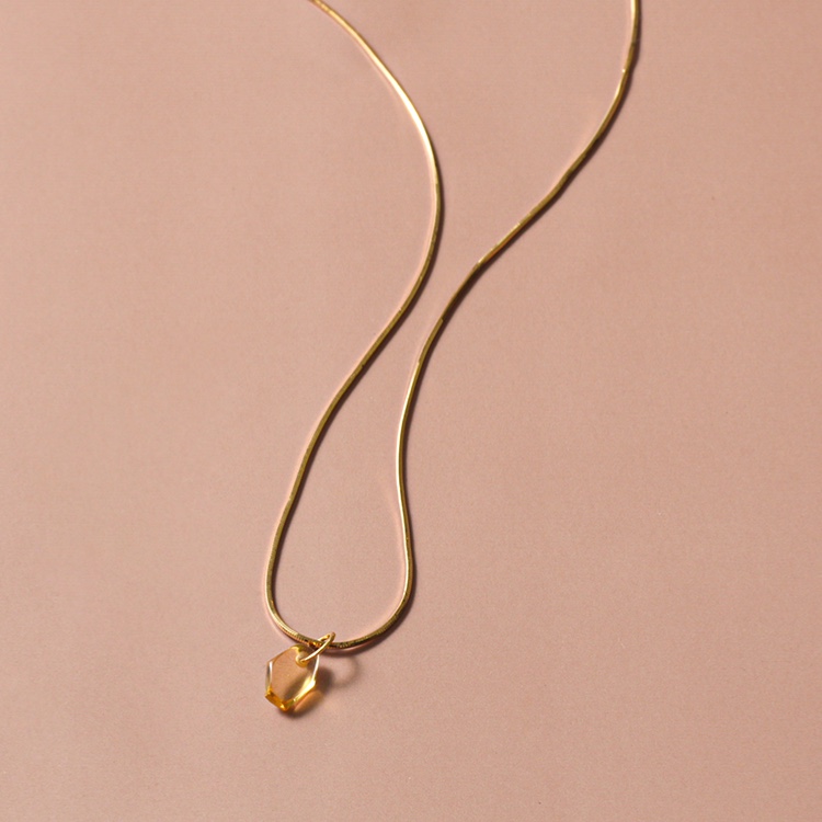 太陽のエネルギーを持つイエローのシトリンは、商売の繁盛や富をもたらす「幸運の石」。これから新しいことを始めようとする人に、希望や勇気などの明るいエネルギーをもたらしてくれます。艶のあるコンパクトチェーンのネックレスで、更に運気をアップ。
