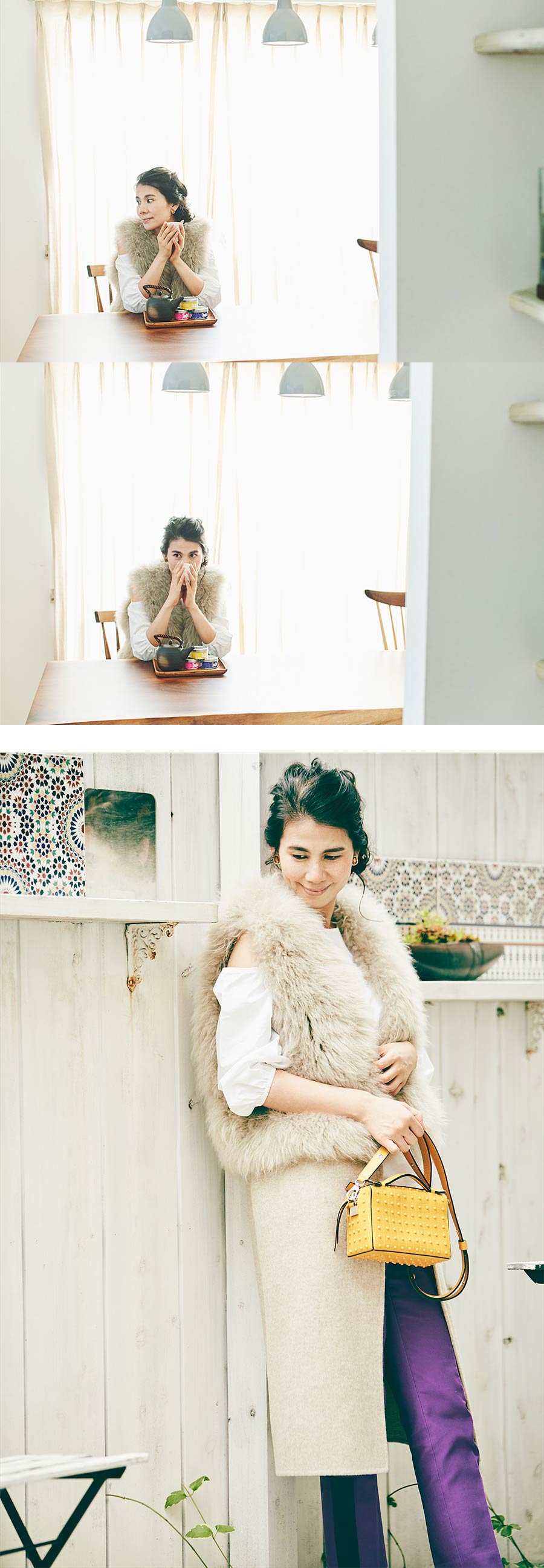 エレガントにスタイリングするファージレ身体を優しく包み込んでくれるソフトな着心地だけでなく、軽さにも驚いたファージレ。ファーとウールをドッキングし、しっかりと長さをとったデザインに一目ぼれ。ビビッドカラーのボトムや小物に合わせて楽しみたい。秋のおしゃれ欲を掻き立ててくれる一着。