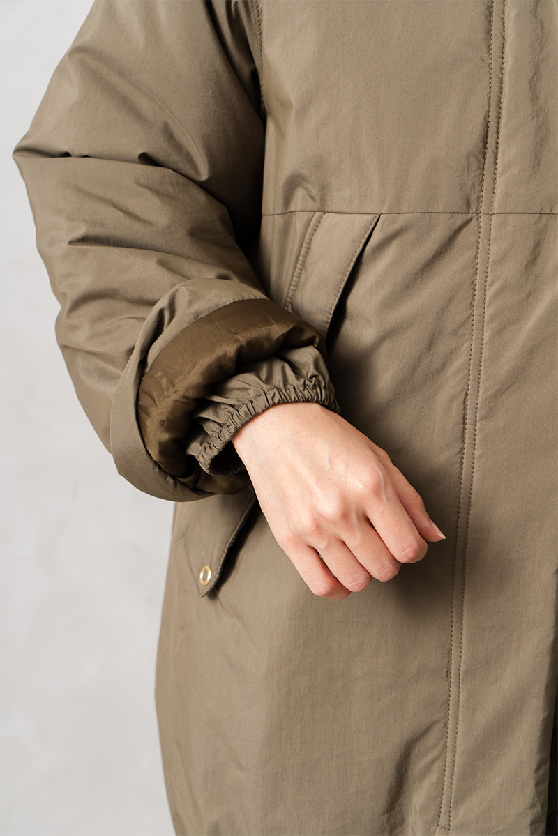 - 通気性と保温性に優れた中綿素材を使用し、機能性にも優れたフードコート。ポケットの内側は起毛素材になっており、寒い冬に手を入れたときに感じる暖かさが嬉しいポイント。ほんのりと艶感があるのでカジュアルになりすぎず上品なスタイルにもマッチ。