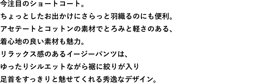 カラフルで自由。心地よい春のNEW COLLECTION 一足早く、春の新作コレクションのWEB予約スタート! 気分が高まるカラフルな色合いやプリントを取り入れた、IENAの新しいトラッドスタイル。 カラフルで自由。心地よい春のNEW COLLECTION 一足早く、春の新作コレクションのWEB予約スタート! 気分が高まるカラフルな色合いやプリントを取り入れた、IENAの新しいトラッドスタイル。 IENA《追加3》3x3リブヘンリーネックプルオーバー◆¥13,200(税込)IENA《追加2》【HEREU/へリュー】BONBON バッグ◆¥39,600(税込)IENA【TICCA/ティッカ】サロペット◆¥31,900(税込)IENAPEポプリンオーバートレンチコート◆¥37,400(税込)IENAIENA ショートブーツ◆¥25,300(税込)IENA【CORSO ROMA/コルソローマ】ローファースリッポン◆¥18,700(税込)IENAオーガニックコットンリブベスト◆¥13,200(税込)IENAストライプ バンドカラーシャツ◆¥14,300(税込)IENAカットツイル イージーパンツ◆¥14,300(税込)IENAアセテートコットンショートコート◆¥7,260(税込) 80%OFF IENAウールデザインワッフルカラープルオーバー◆¥17,600(税込)IENAかすれフラワー ギャザースカート◆¥18,700(税込)IENA【LE TROYES/ルトロワ】IENA別注Vネックカーディガン◆¥23,100(税込)IENAクルーネックシャツブラウス◆¥16,500(税込)IENAツイル ショートコート◆¥28,600(税込)IENAウィステリア フラワースリットスカート◆¥17,600(税込) IENA【NINA&JULES】ブレスレット 65¥8,800(税込)IENA【GISEL B】フラワーリング¥14,300(税込)IENA【NINA&JULES】リング 12¥5,500(税込)IENA【viv&ingrid】ビーズピアス¥17,600(税込)IENA【GISEL B】パールネックレス¥14,300(税込)IENA【FABRIZIO VITI/ファブリツィオ ヴィティ】Bea アンクルストラップデイジーサンダル¥17,380(税込) 80%OFFIENA【NINA&JULES】リング 68¥8,800(税込) IENAカラーチノストレッチスリムパンツ◆¥16,500(税込)IENA《追加2》【HEREU/へリュー】BONBON バッグ◆¥39,600(税込)IENAストレッチデニムスリムパンツ◆¥16,500(税込)IENAコットンブロードバックボタンシャツ◆¥15,400(税込) IENA【unfil/ アンフィル】別注フレンチリネンニット◆¥28,600(税込)IENAカラーチノソフトバギーパンツ◆¥16,500(税込)IENA【STATUS/ステイタス】スリットフラットシューズ◆¥19,800(税込)IENAソフトバギーデニムパンツ◆¥16,500(税込)IENA《追加2》ラウンドテールプルオーバー◆¥5,225(税込) 50%OFF IENAレースボリュームスリーブブラウス◆¥18,700(税込)IENAベルテッドタックパンツ◆¥17,600(税込)IENA 予約一覧