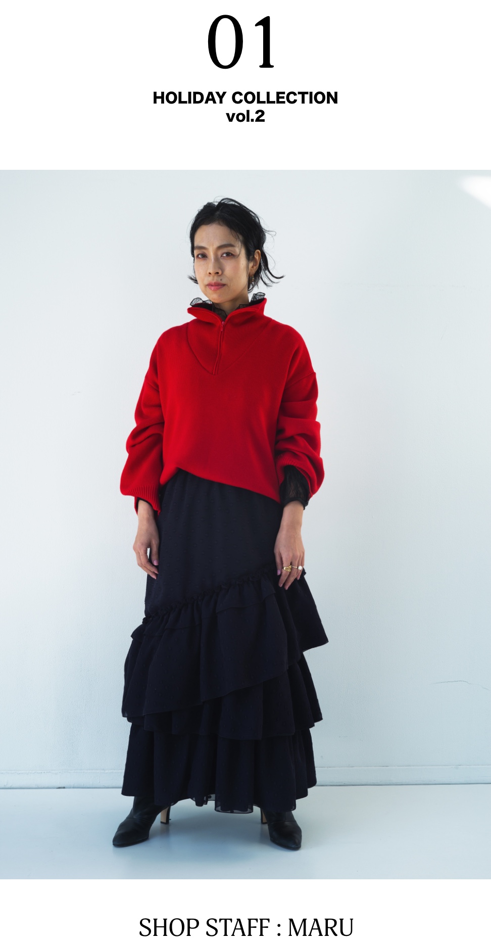 #好きな服を好きに着る 今年のホリデーコレクションの中から自分自身のスペシャルピースを。 7人のラブークルスタッフそれぞれが、それぞれの個性で着こなします。 #好きな服を好きに着る 今年のホリデーコレクションの中から 自分自身のスペシャルピースを。 7人のラブークルスタッフそれぞれが、 それぞれの個性で着こなします。 ※ブーツ本人私物 IENAIENA LA BOUCLE ドットカットジャガードフリルスカート◆¥15,950(税込) 50%OFFIENAIENA LA BOUCLE リバーレース ボリュームスリーブブラウス◆¥41,800(税込)IENA【ROSEanna/ローズアンナ】 JUDE ニットプルオーバー¥63,800(税込)※カチューシャ 本人私物 IENAIENA LA BOUCLE スパンコール ペンシルスカート◆¥18,700(税込)IENAIENA LA BOUCLE VICTORIA ロングプルオーバー◆¥16,500(税込)IENA【LIAH】MERINO WOOL ストール¥35,200(税込)IENA【Steve Mono / スティーブ モノ】BOX POCHETTE バッグ¥42,900(税込)IENA【FABRIZIO VITI/ファブリツィオ ヴィティ】 KEATON ローファー¥91,300(税込)※サロペット、タンクトップ、アクセサリー すべて本人私物 IENAIENA LA BOUCLE TENERO セーラーカーディガン◆¥27,500(税込)※レースブラウス、カチューシャ 本人私物 IENAIENA LA BOUCLE シャギーニット ボートネックプルオーバー◆¥27,500(税込)IENAIENA LA BOUCLE 杢ツイード テーラードジャケット◆¥35,200(税込)※シューズ 本人私物 IENAIENA LA BOUCLE ヘビーサテン ヘムフリルショートパンツ◆¥11,550(税込) 30%OFFIENAIENA LA BOUCLE リバーレース ボリュームスリーブブラウス◆¥41,800(税込)IENAIENA LA BOUCLE SHEPLEY ケーブル ニットプルオーバー◆¥26,400(税込)※スカーフ、シューズ 本人私物 IENAIENA LA BOUCLE ウールスムース セーラーパンツ◆¥25,300(税込)IENAIENA LA BOUCLE VICTORIA サーマルプルオーバー◆¥8,250(税込) 50%OFF※トップス、スニーカー 本人私物 IENAIENA LA BOUCLE ブッチャーフリル サロペット◆¥29,700(税込)IENAIENA LA BOUCLE CLARENSON ジャケット◆¥63,800(税込)IENA LA BOUCLEアイテム一覧はこちら
