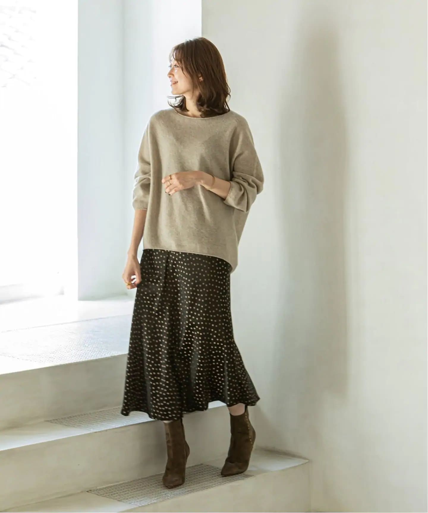 くるぶし丈の細かなプリーツスカートなら幼くならず◎。