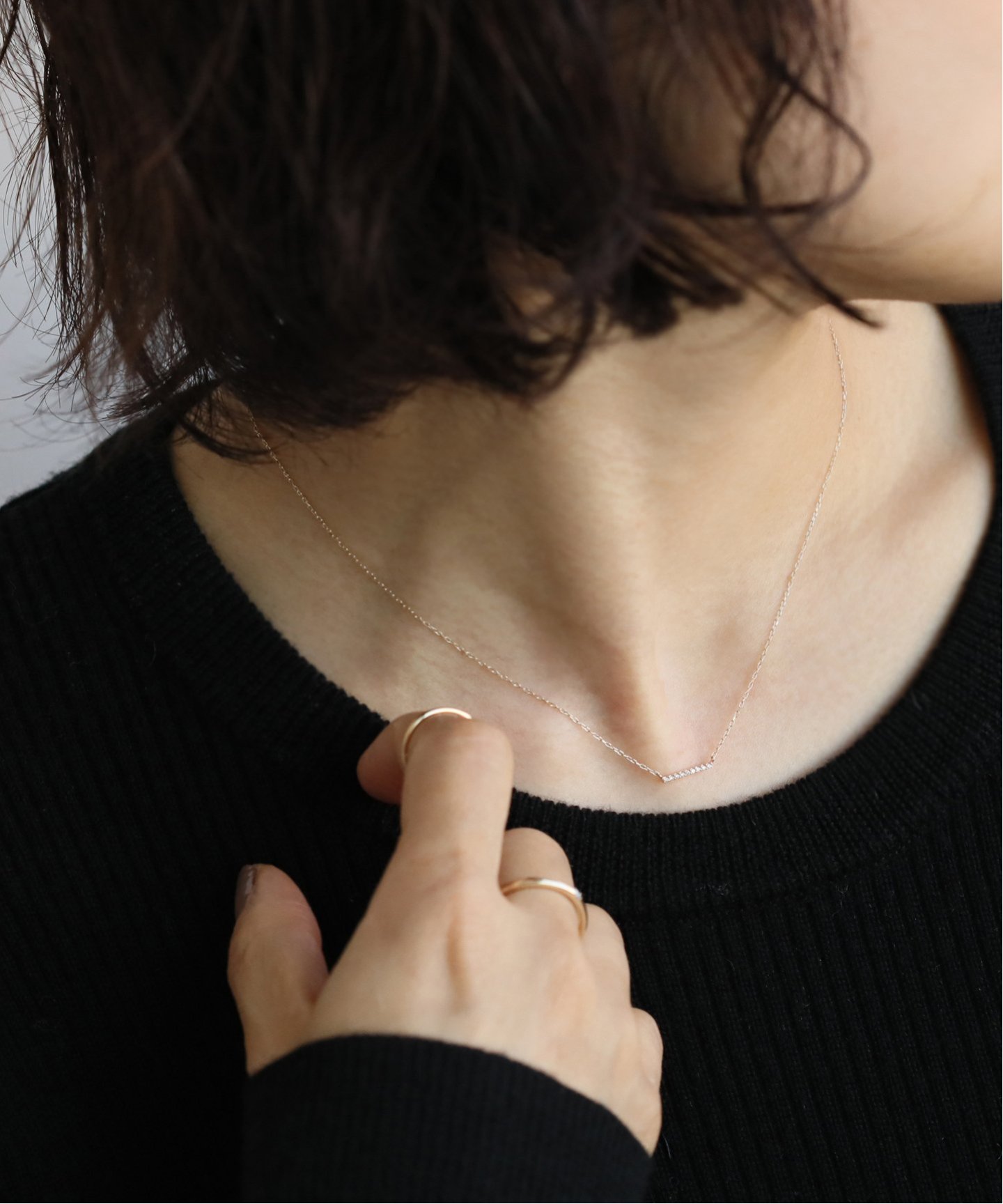 首元にキラリと輝く
