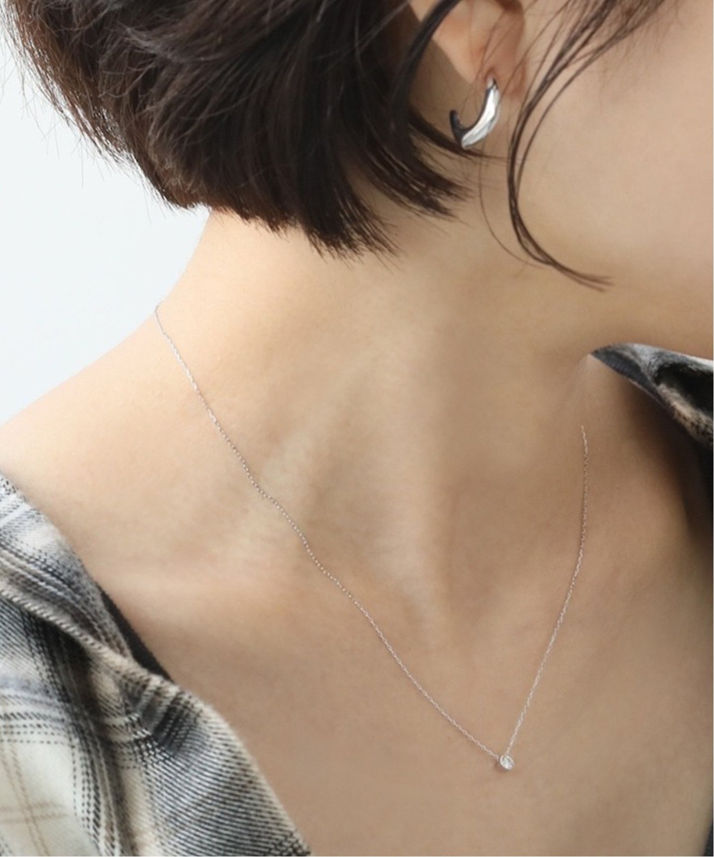 短めのチェーンネックレス。