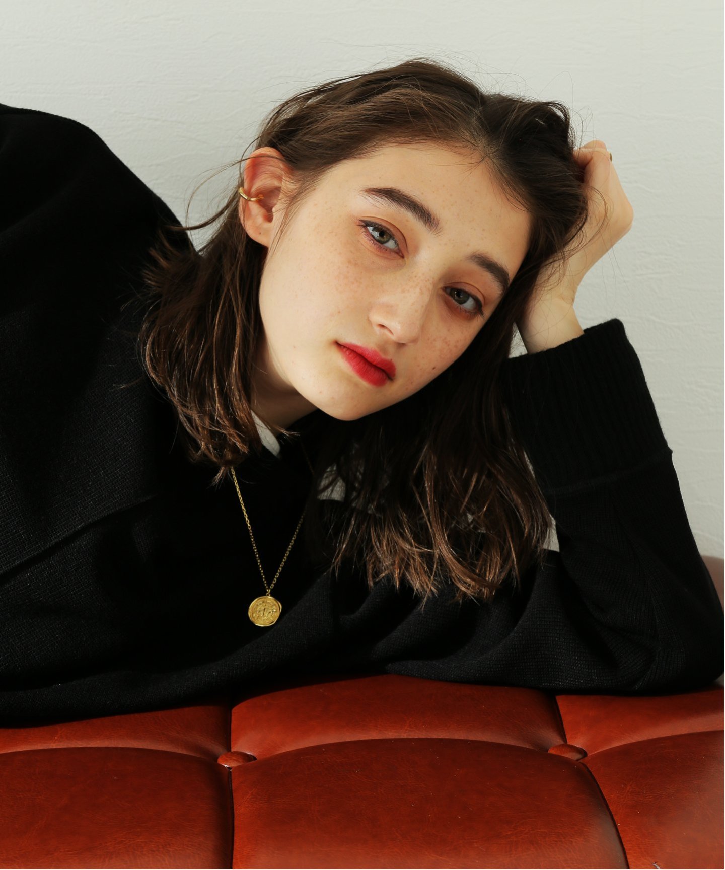 ダークトーンのニットには