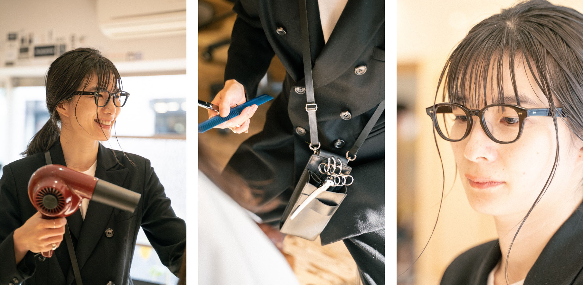 現在、アシスタントをしているのですが、お客様が来店されてから、気持ちいいと思って頂けるシャンプーから、楽しいとか心地のいいと思って頂ける接客を心掛け、スタイリストの方々と一緒にヘアスタイルを作ることを一番大切にしています。最近は自分のお客様もやらせて頂く機会も増え、将来スタイリストになった時に自分を頼ってきていただけるように頑張っています。